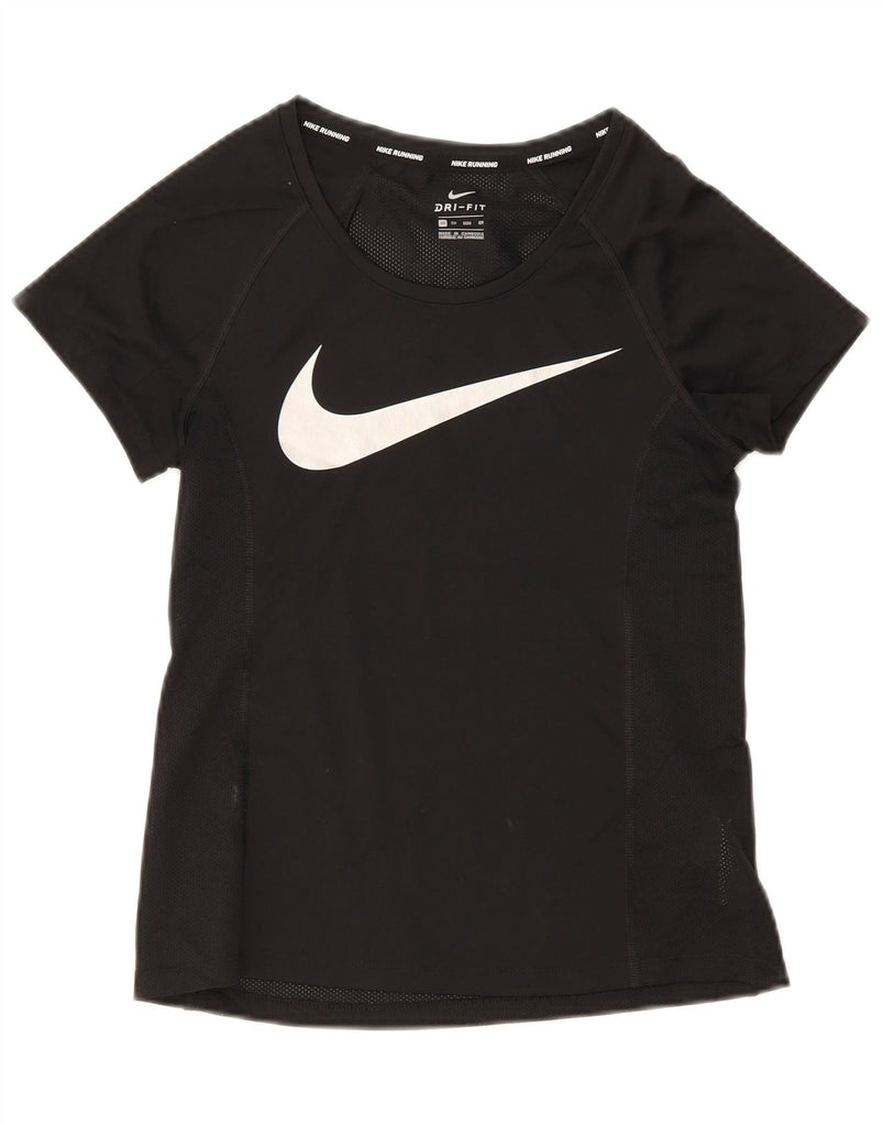 NIKE Womens Dri Fit Graphic T-Shirt Top UK 6 XS Black Polyester