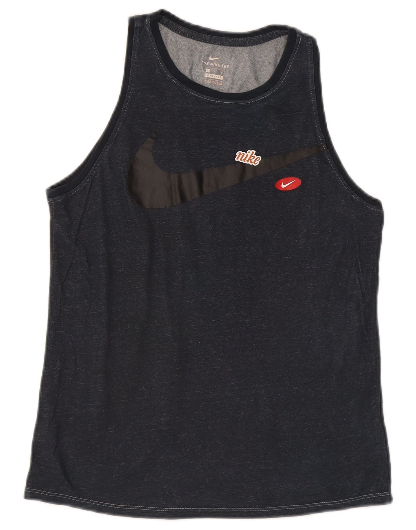 NIKE Womens Dri Fit Graphic Vest Top UK 10 Small Navy Blue Flecked