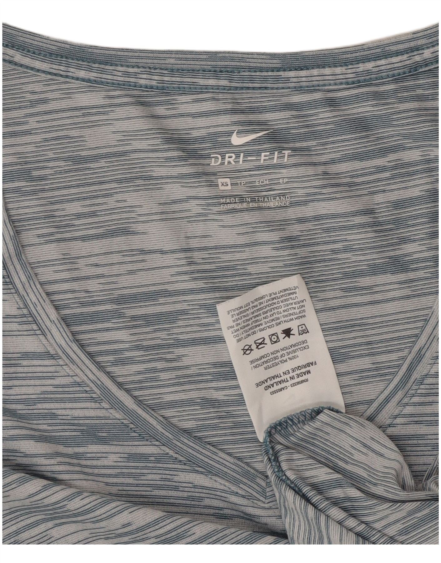 Nike Womens Dri Fit Loose Fit T-Shirt Top UK 6 XS Blue Striped Polyester