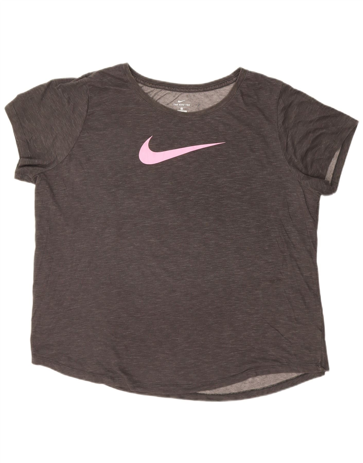 NIKE Womens Dri Fit Oversized Graphic T-Shirt Top UK 22 3XL Grey Cotton