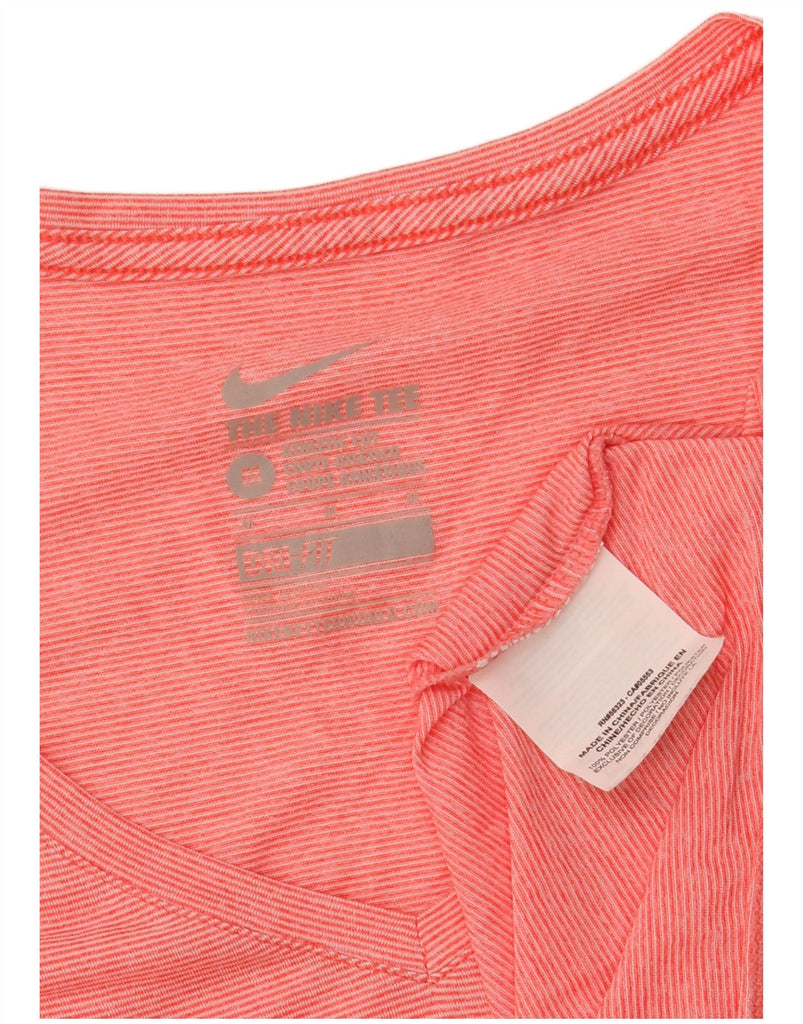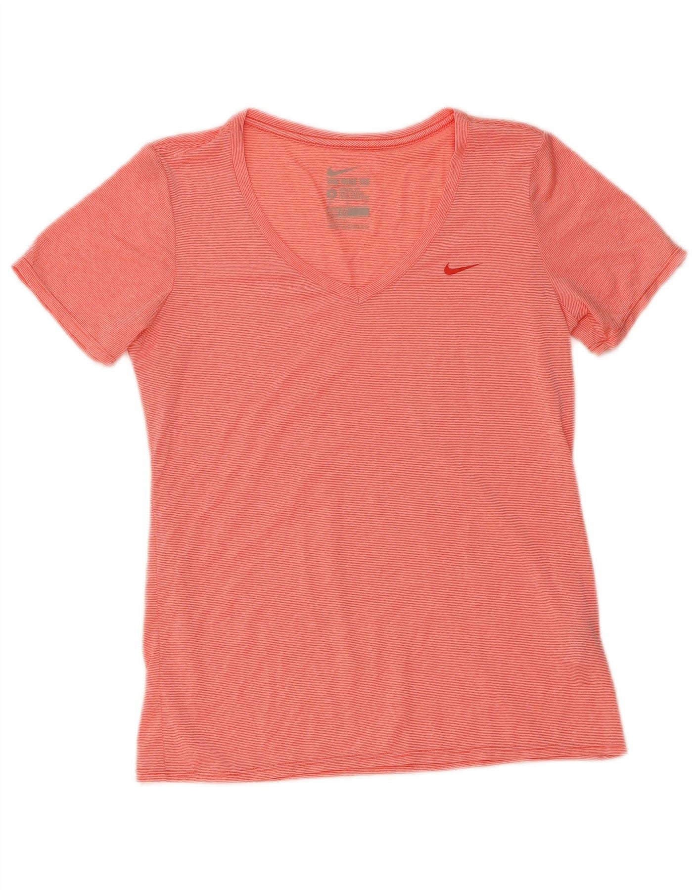 NIKE Womens Dri Fit T-Shirt Top UK 12 Medium Red Pinstripe Polyester