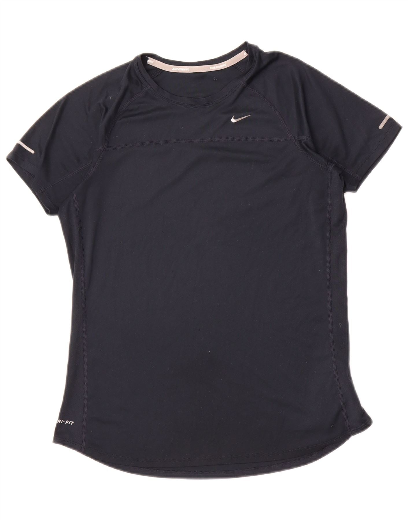 NIKE Womens Dri Fit T-Shirt Top UK 14 Medium Navy Blue Polyester