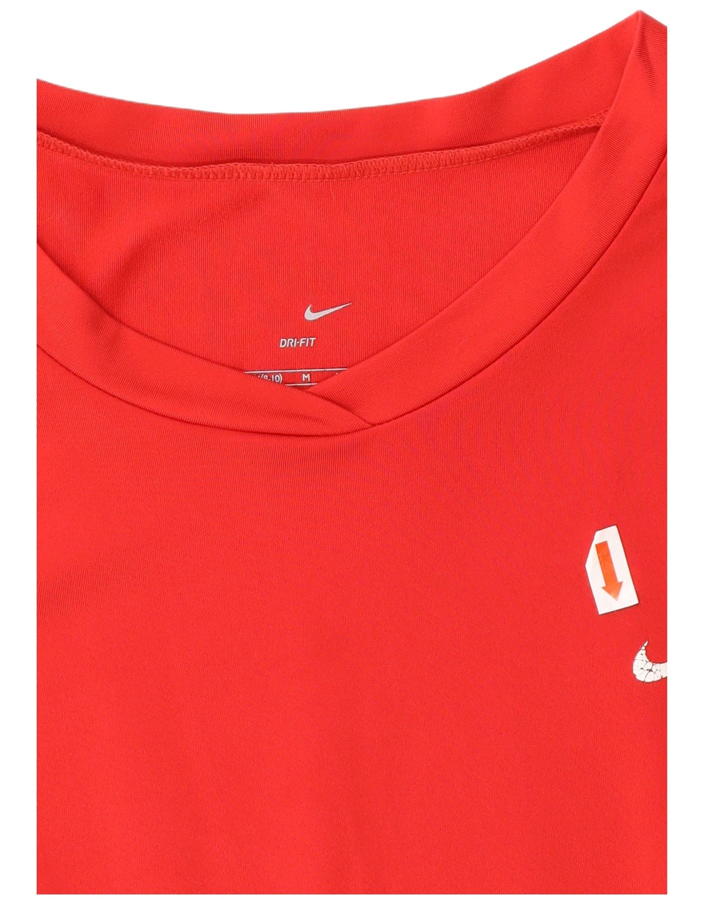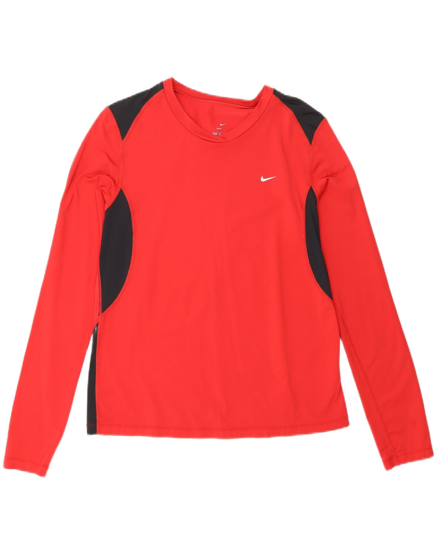 NIKE Womens Dri Fit Top Long Sleeve UK 8/10 Medium Red Colourblock