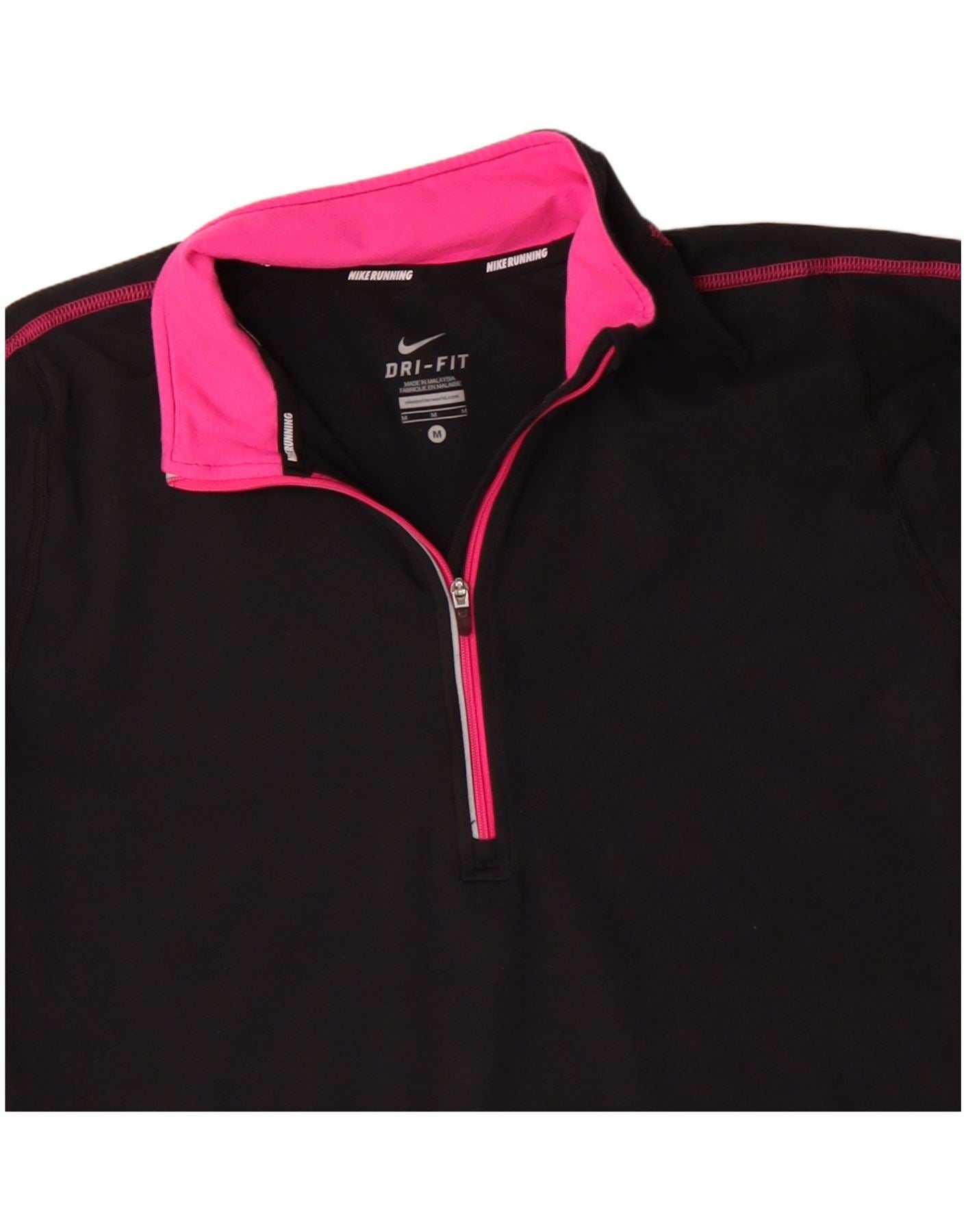 NIKE Womens Dri Fit Zip Neck Pullover Tracksuit Top UK 12 Medium Black