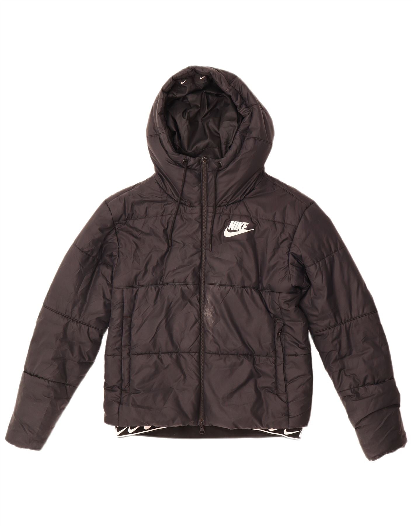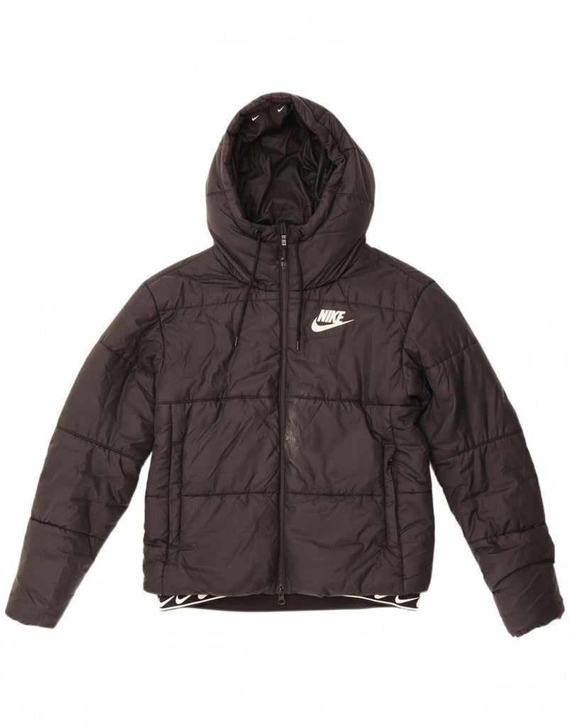 NIKE Womens Graphic Hooded Padded Jacket UK 10 Small Black Polyester