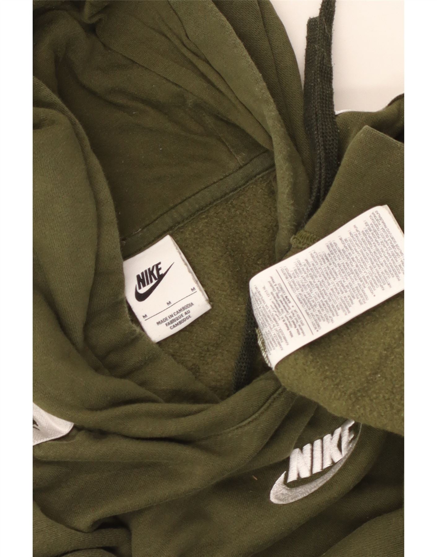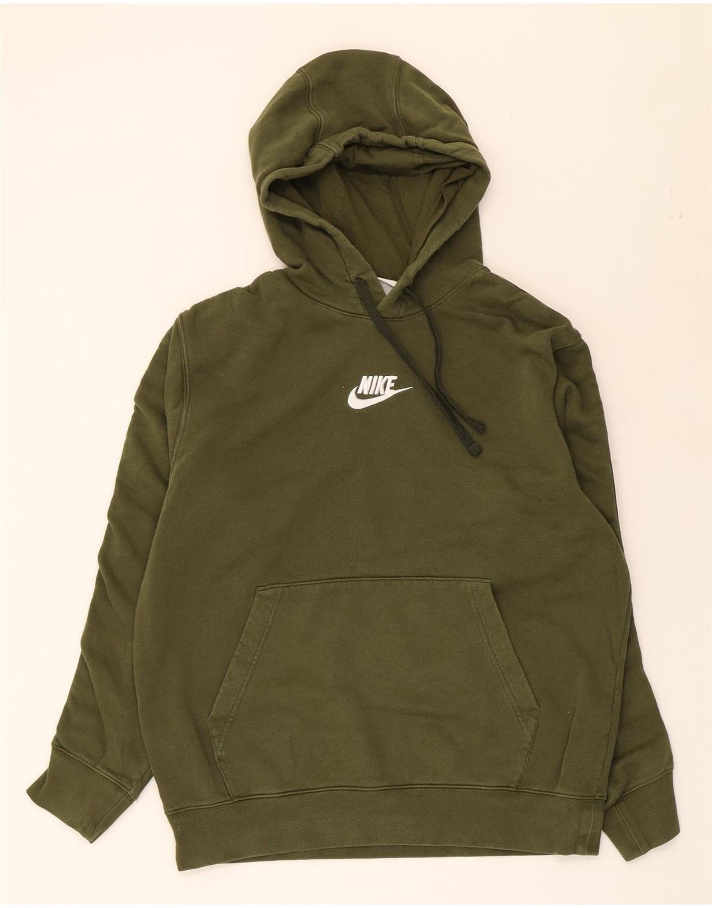 NIKE Womens Graphic Hoodie Jumper UK 14 Medium Khaki Colourblock Cotton