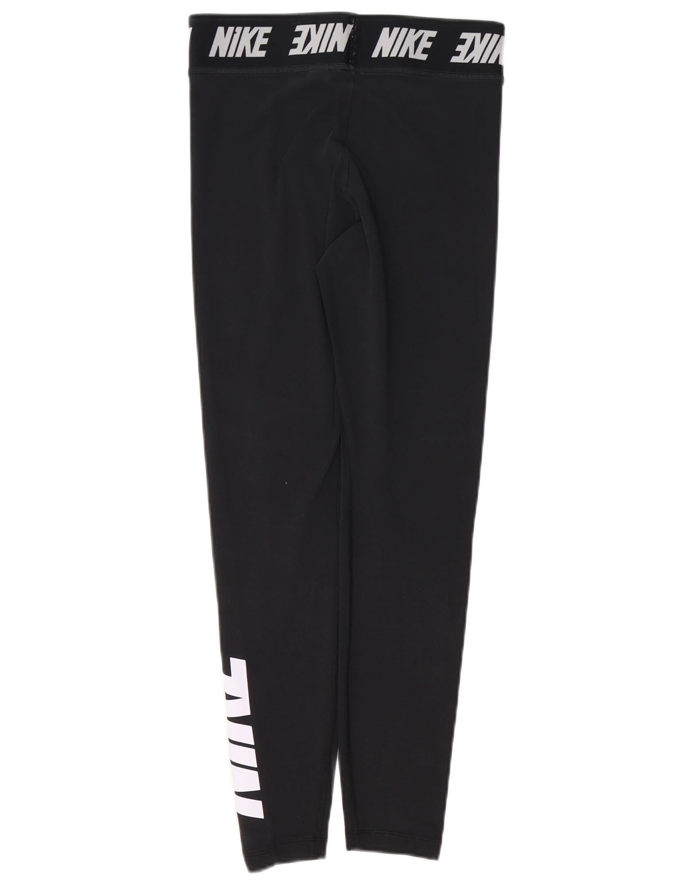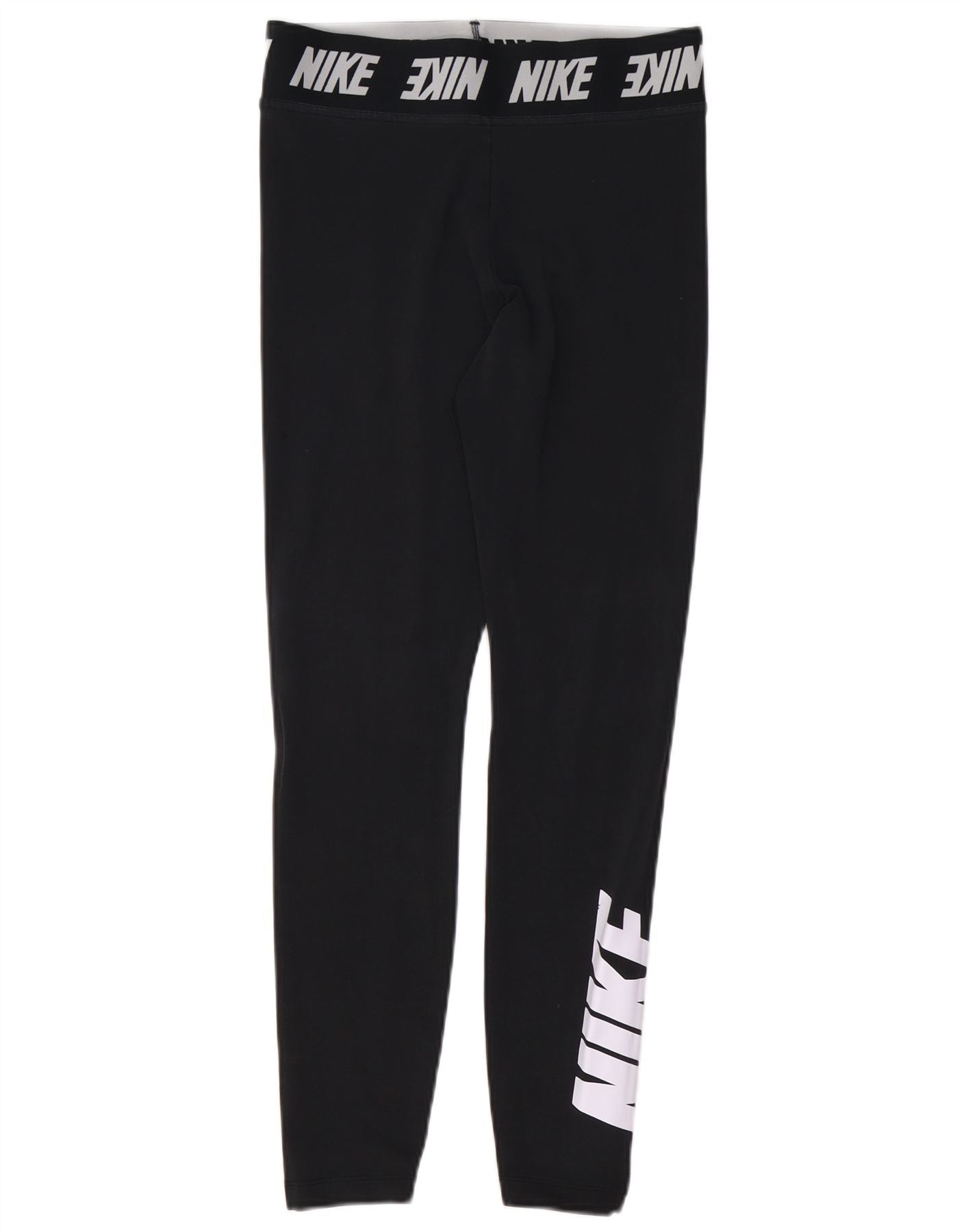 NIKE Womens Graphic Leggings UK 14 Medium Black Cotton