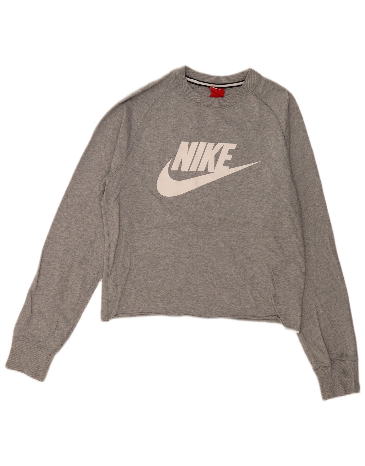 NIKE Womens Graphic Sweatshirt Jumper UK 10 Small Grey Cotton