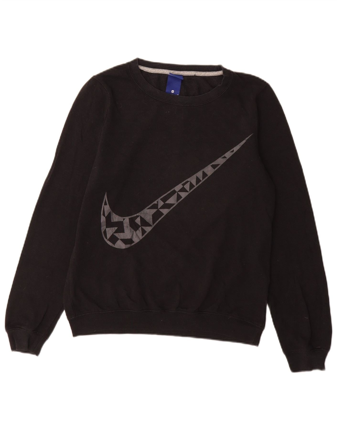 NIKE Womens Graphic Sweatshirt Jumper UK 14 Medium Black Cotton