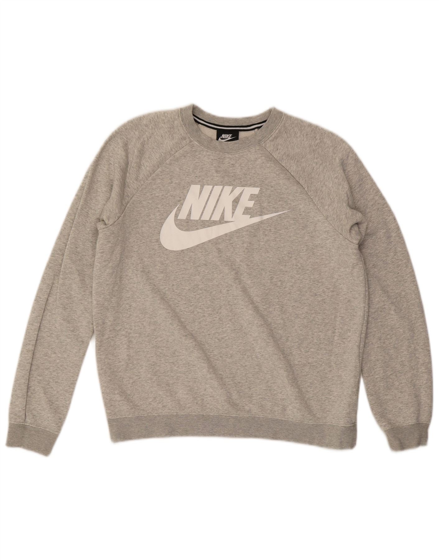 NIKE Womens Graphic Sweatshirt Jumper UK 14 Medium Grey Cotton