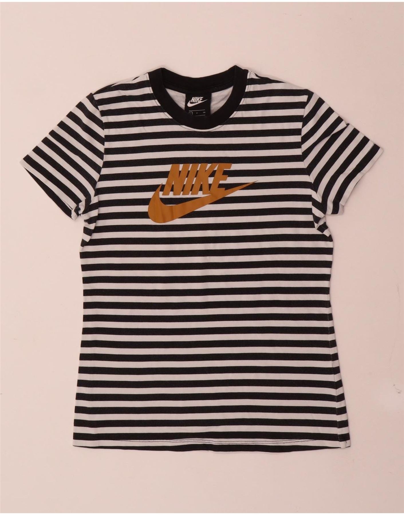 NIKE Womens Graphic T-Shirt Top UK 10 Small Black Striped Cotton