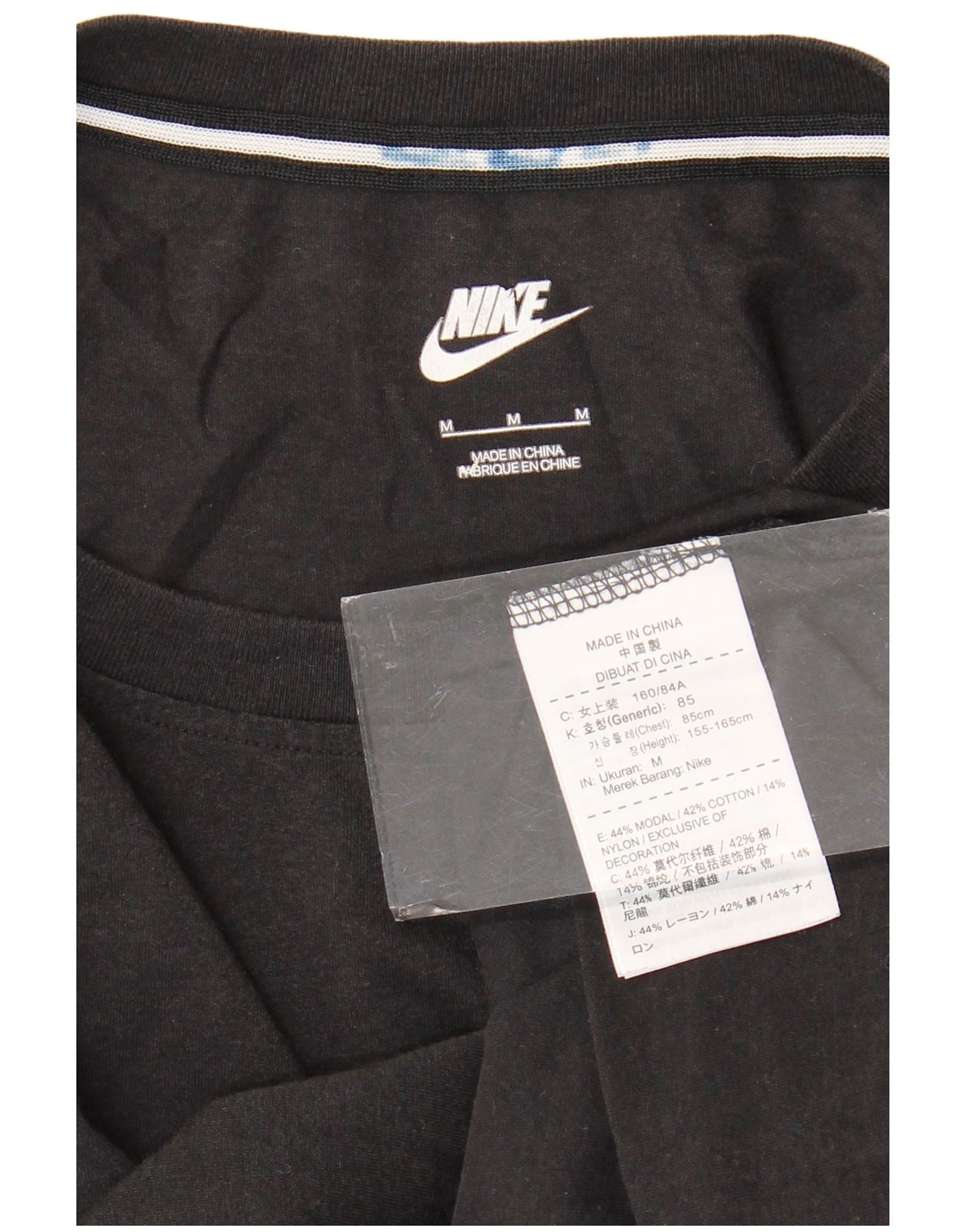 NIKE Womens Graphic T-Shirt Top UK 12 Medium Black Modal
