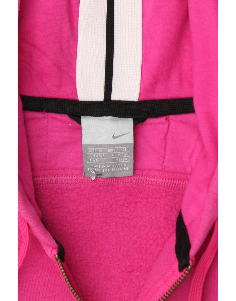 NIKE Womens Graphic Zip Hoodie Sweater UK 16/18 XL Pink Colourblock Cotton