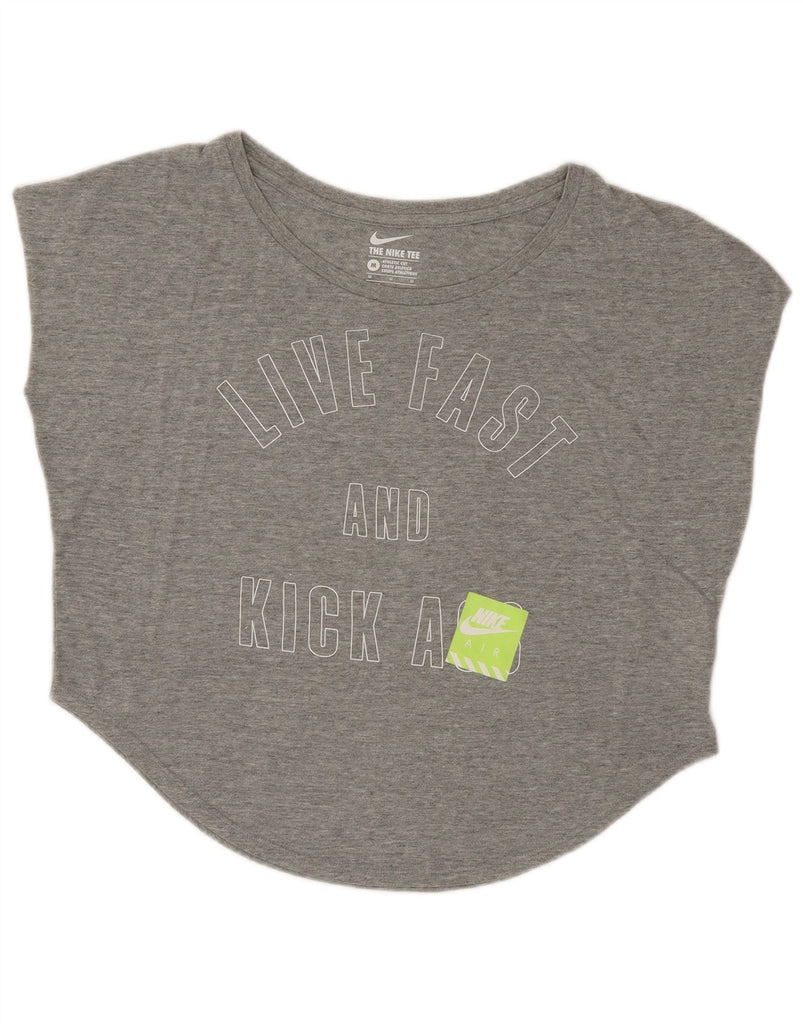 NIKE Womens Loose Fit Graphic Vest Top UK 12 Medium Grey Polyester