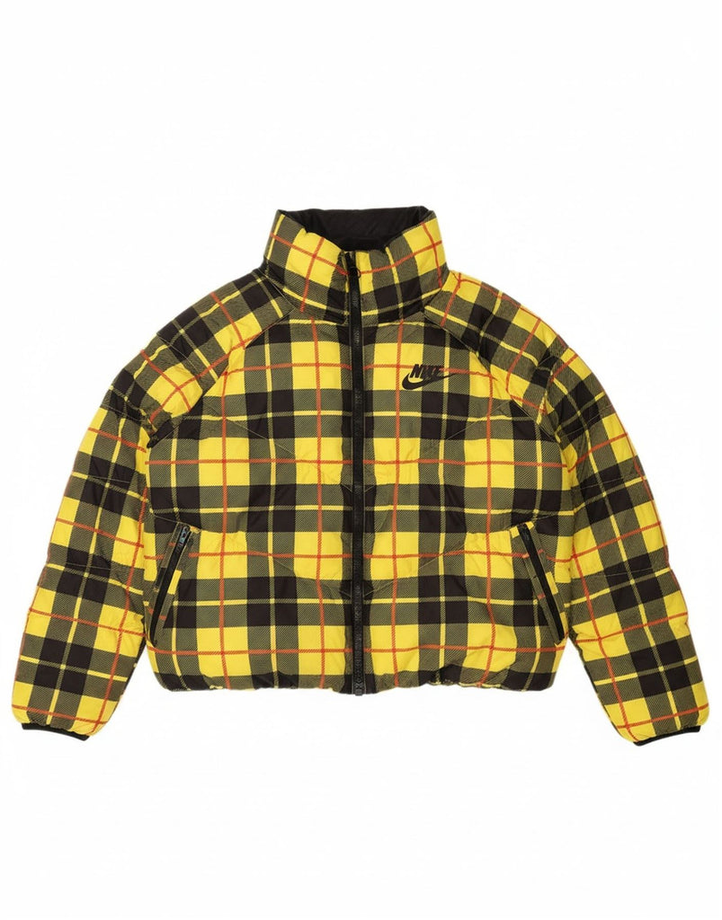 NIKE Womens Oversized Crop Padded Jacket UK 14 Medium Yellow Check