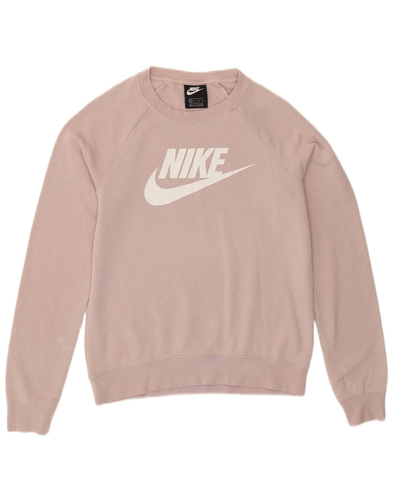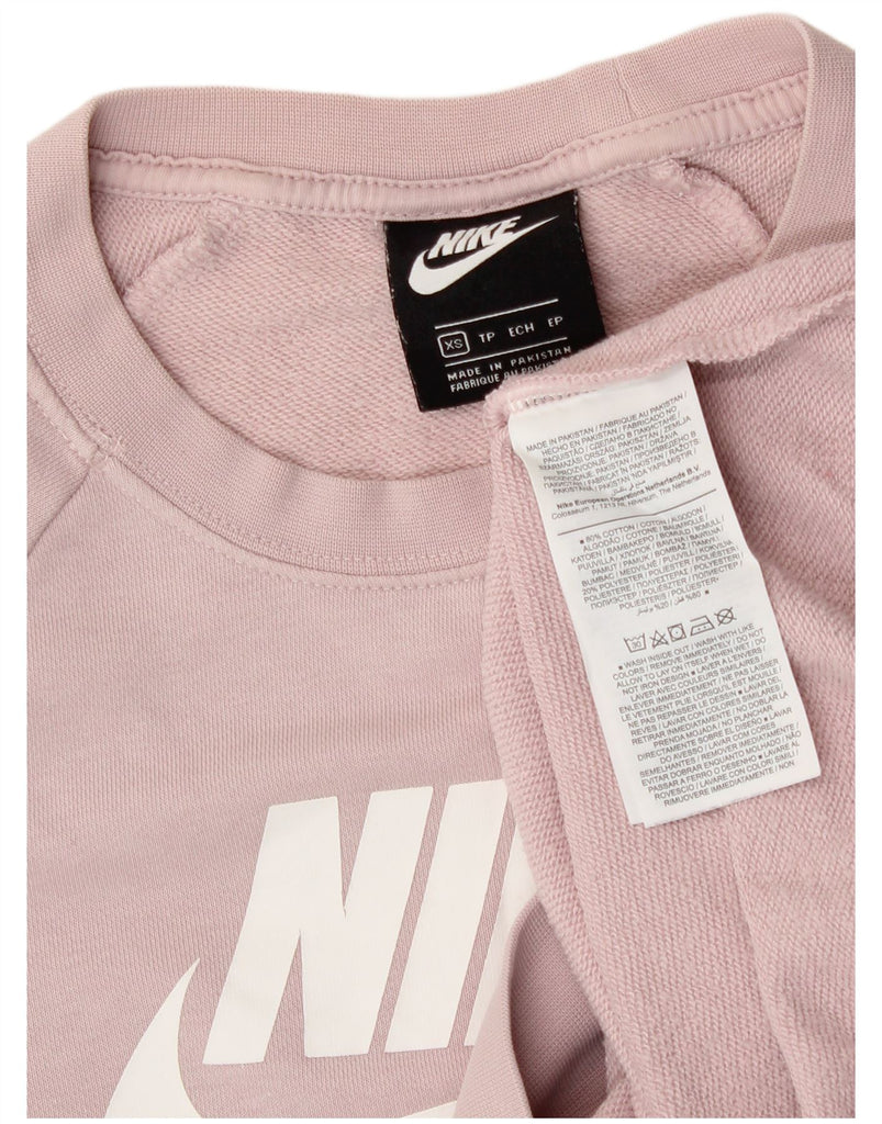 NIKE Womens Oversized Graphic Sweatshirt Jumper UK 6 XS Pink Cotton
