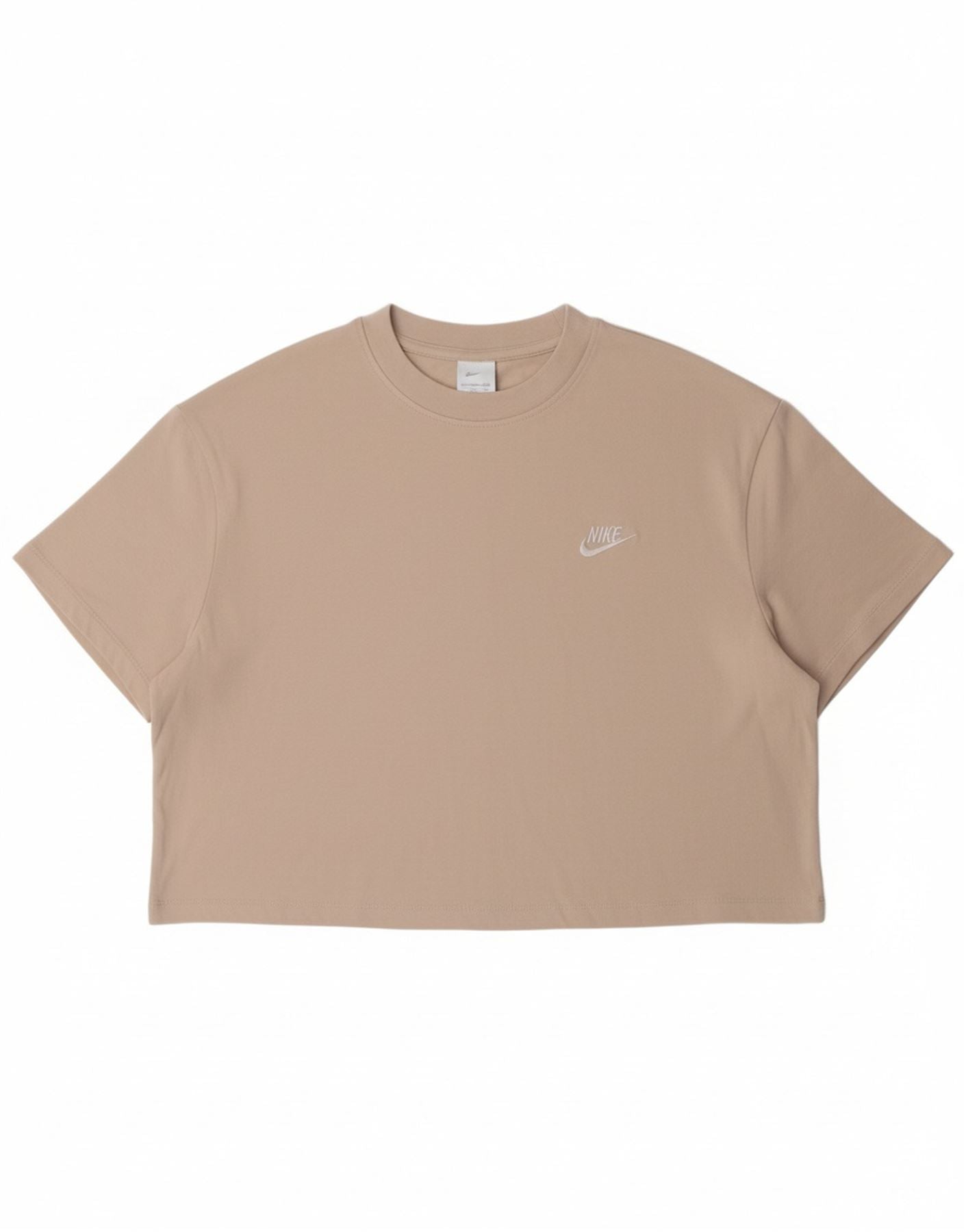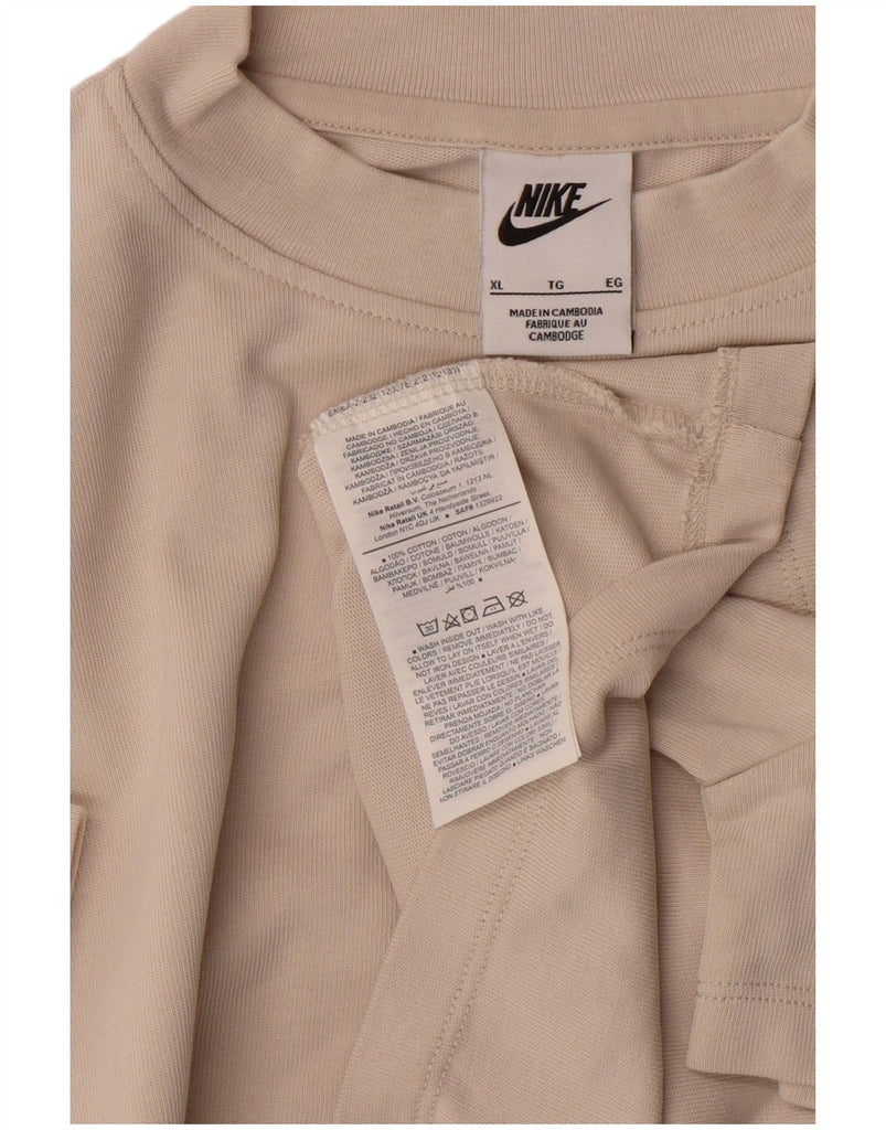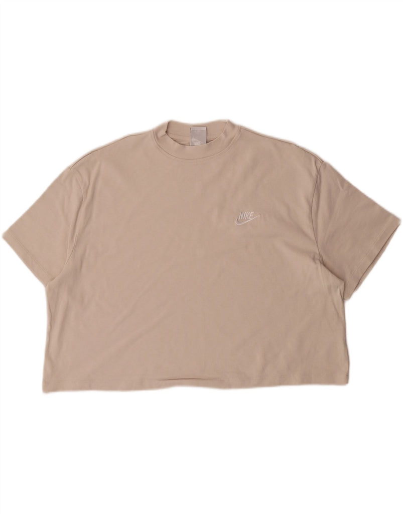 NIKE Womens Short Sleeve Crop Sweatshirt Jumper UK 18 XL Beige Cotton