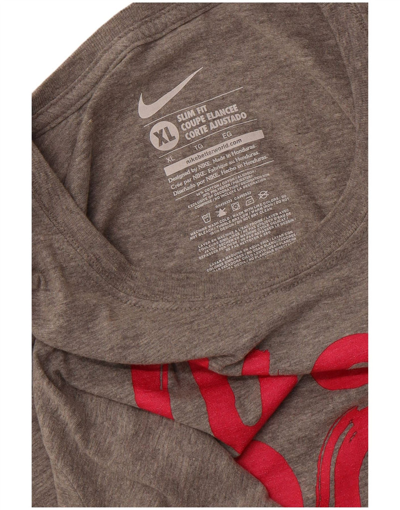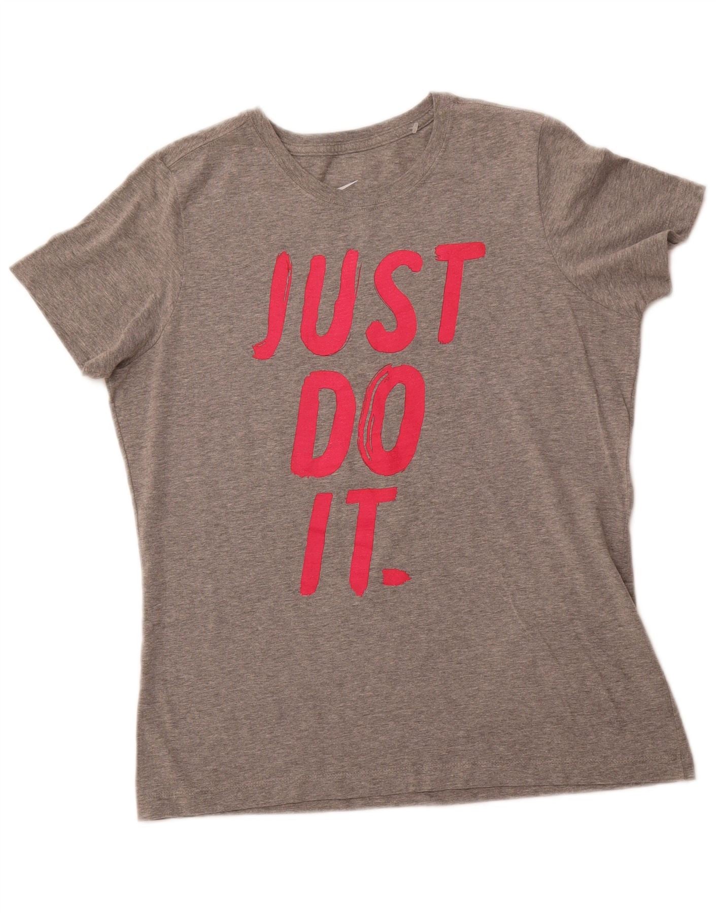 NIKE Womens Slim Fit Graphic T-Shirt Top UK 18 XL Grey Cotton