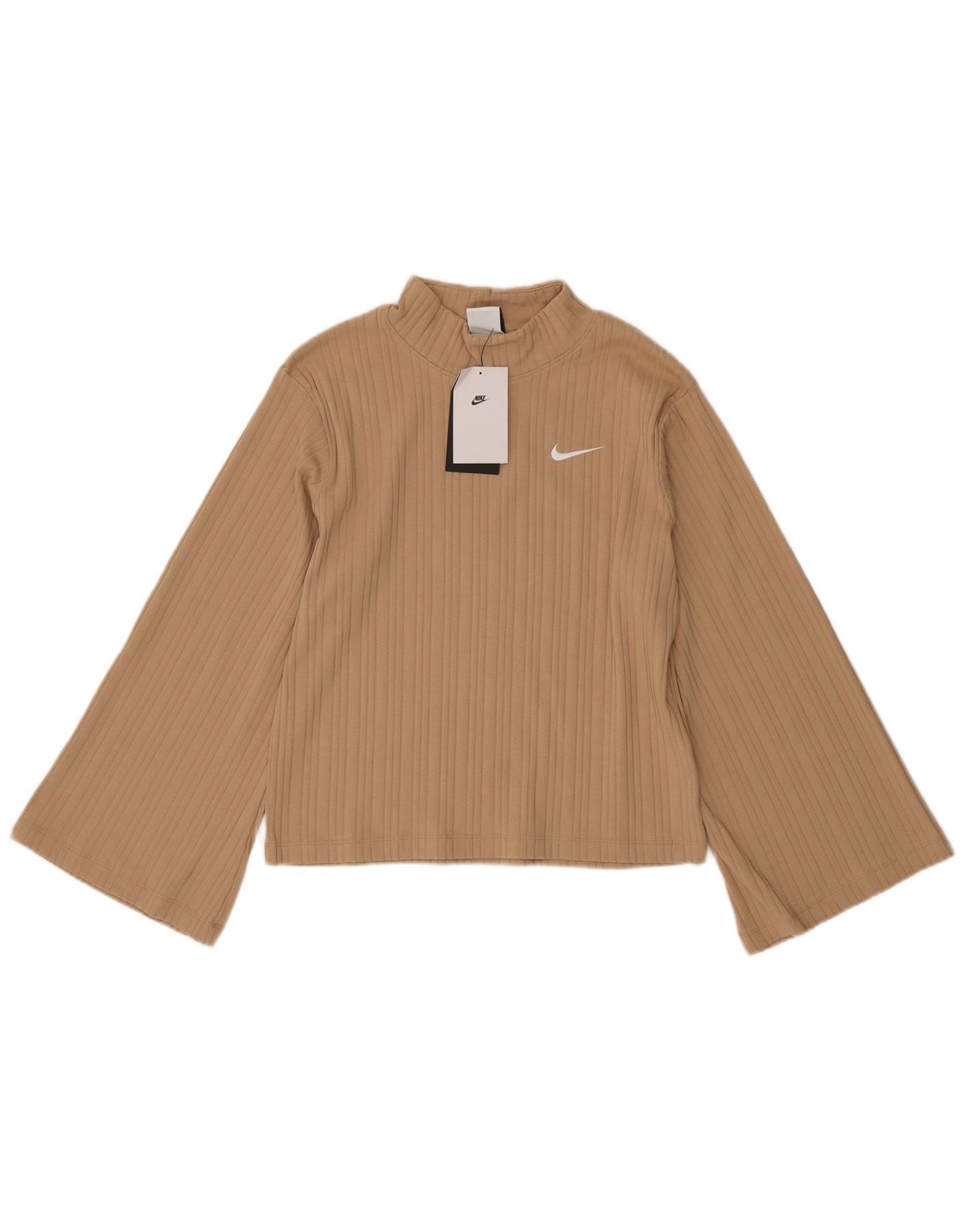 Nike Womens Top Long Sleeve UK 6 XS Beige Cotton