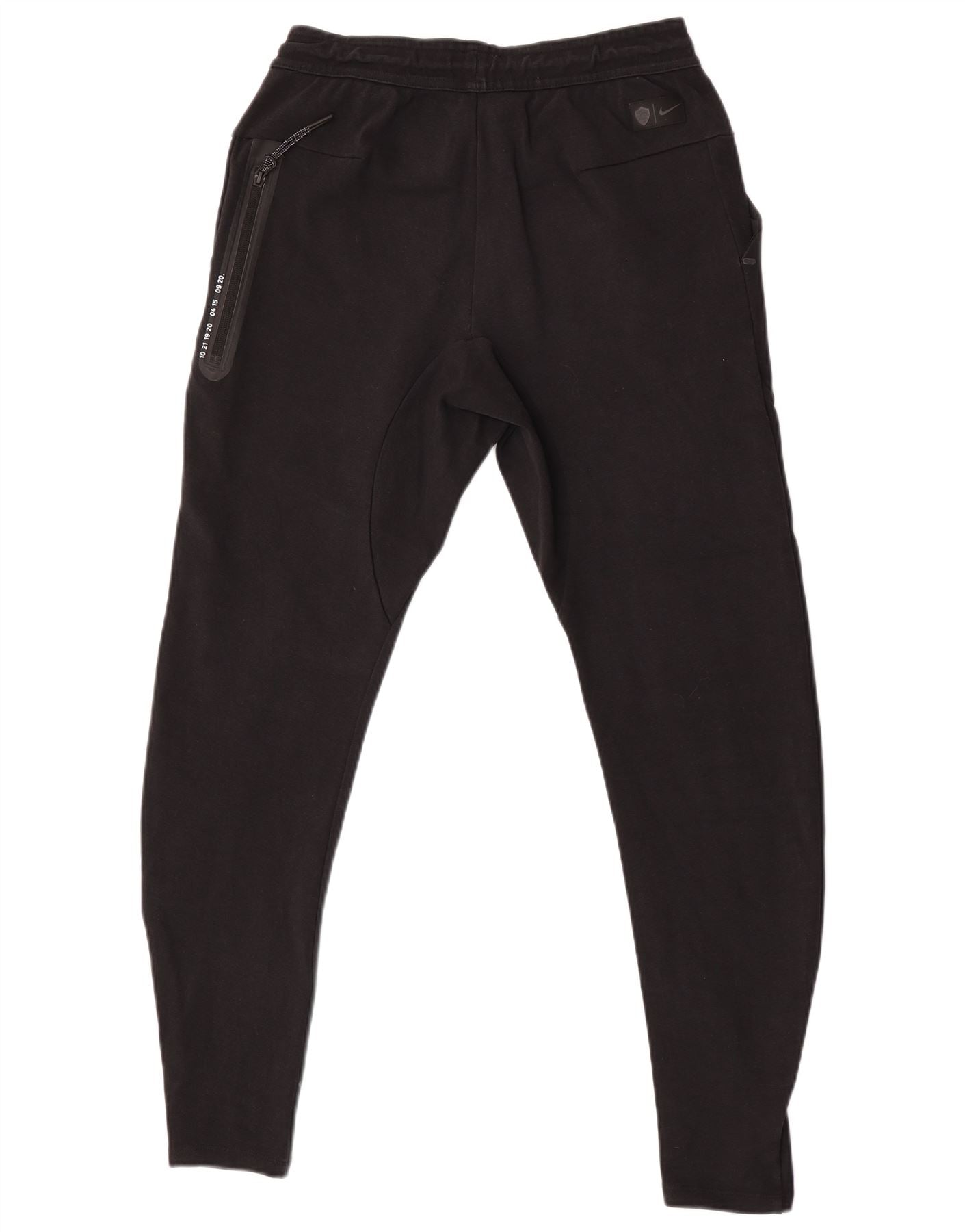 - AI Description: These Nike mens casual trousers are crafted from soft black jersey fabric. They feature a comfortable pull on design with an elasticated waist and drawstring. The legs are tapered, leading to cuffed ankles for a modern jogger fit. Practical pockets are included. An orange Nike logo and AS Roma branding add distinctive sports detailing. The regular fit ensures ease of movement, perfect for sports or casual wear.