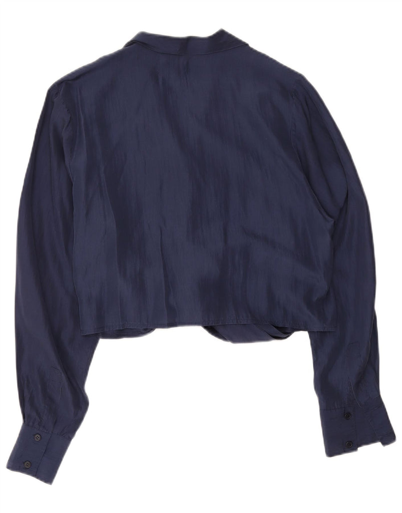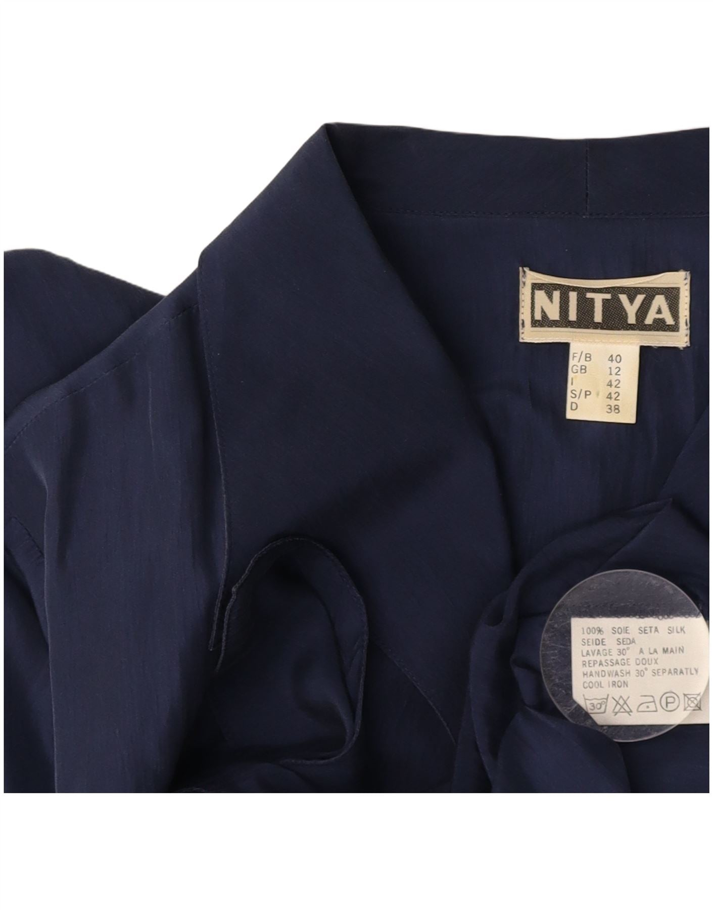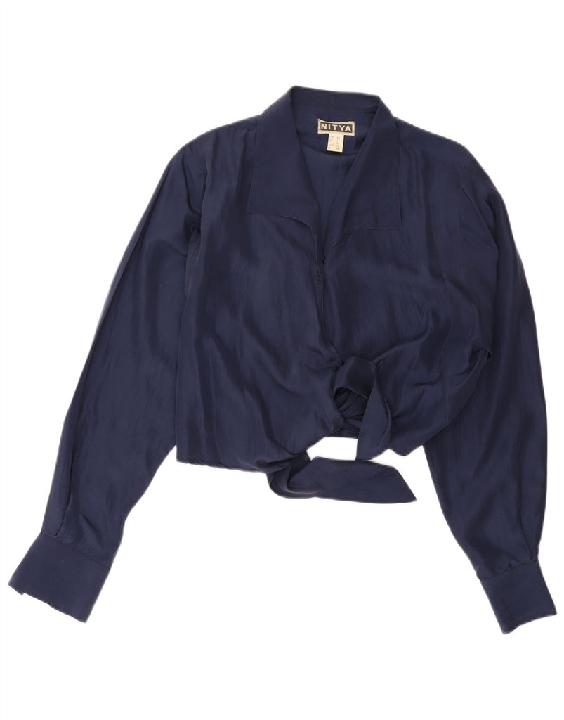 NITYA Womens Crop Wrap Shirt Blouse UK 12 Medium Navy Blue Silk