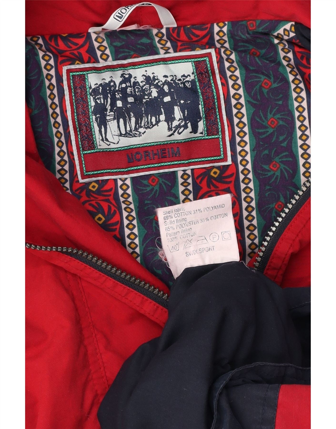NORHEIM Mens Hooded Anorak Jacket UK 40 Large Red Colourblock Cotton