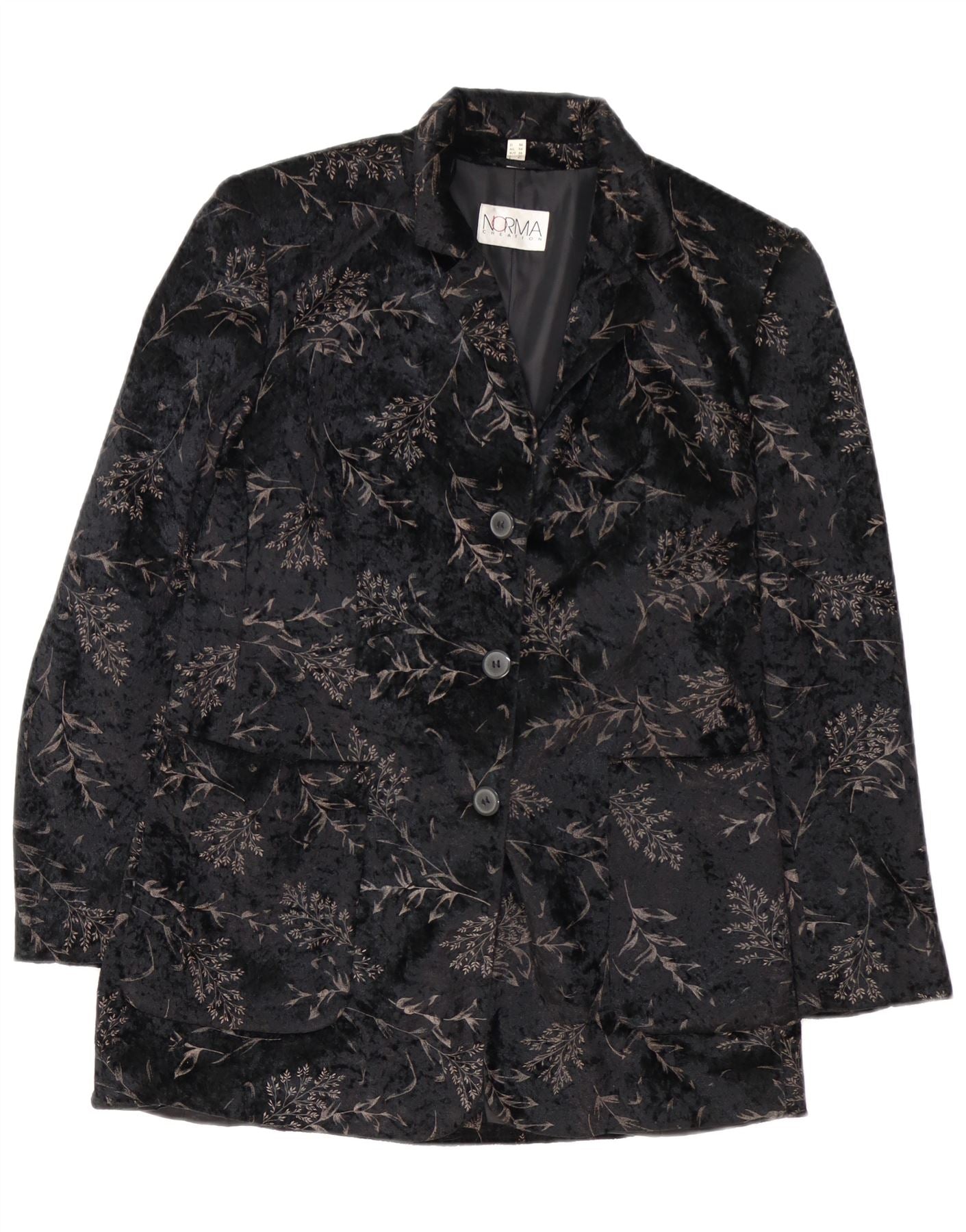 NORMA Womens Longline 3 Button Blazer Jacket UK 10 Small Black Floral