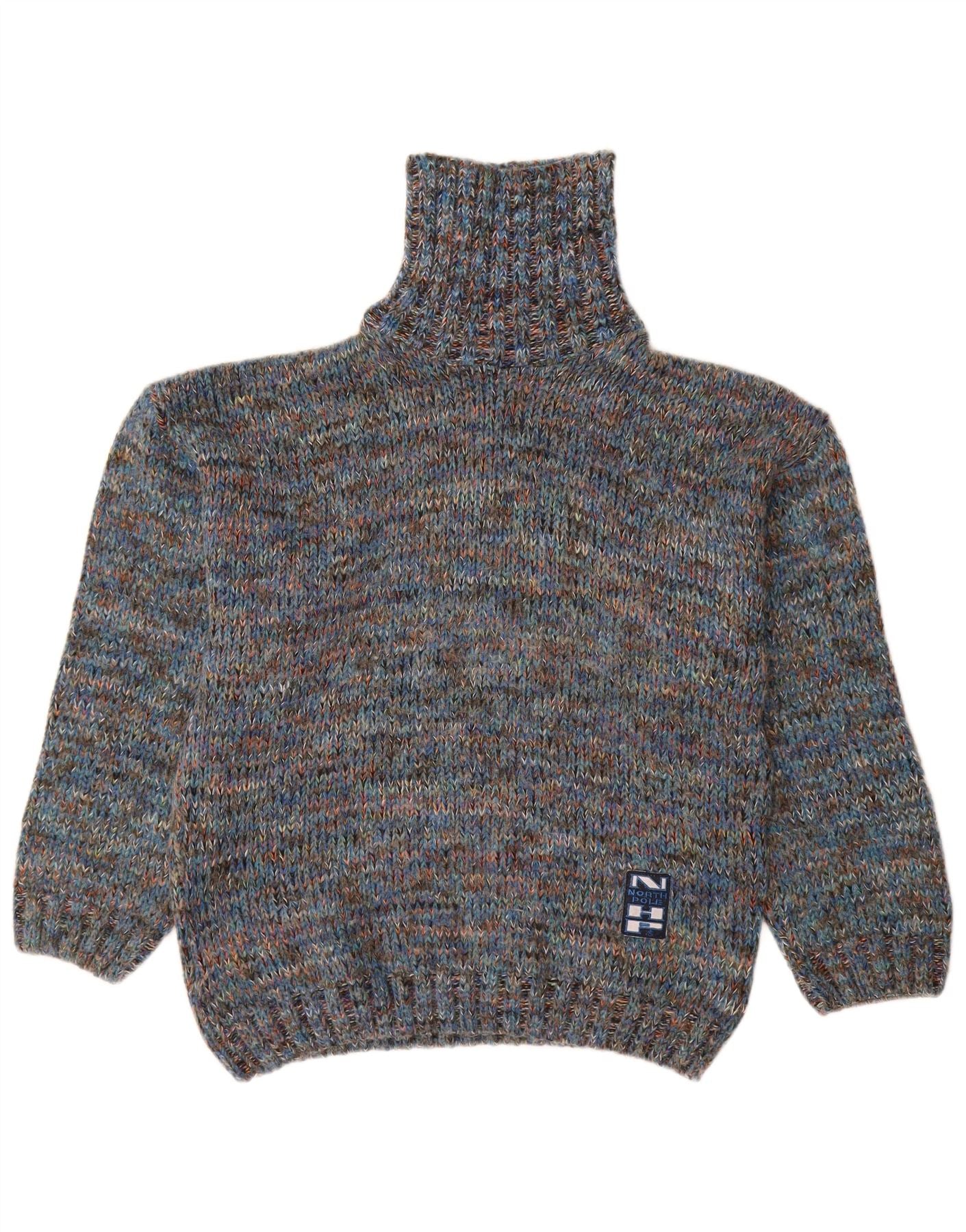 NORTH POLE Mens Roll Neck Jumper Sweater Medium Blue Flecked Wool