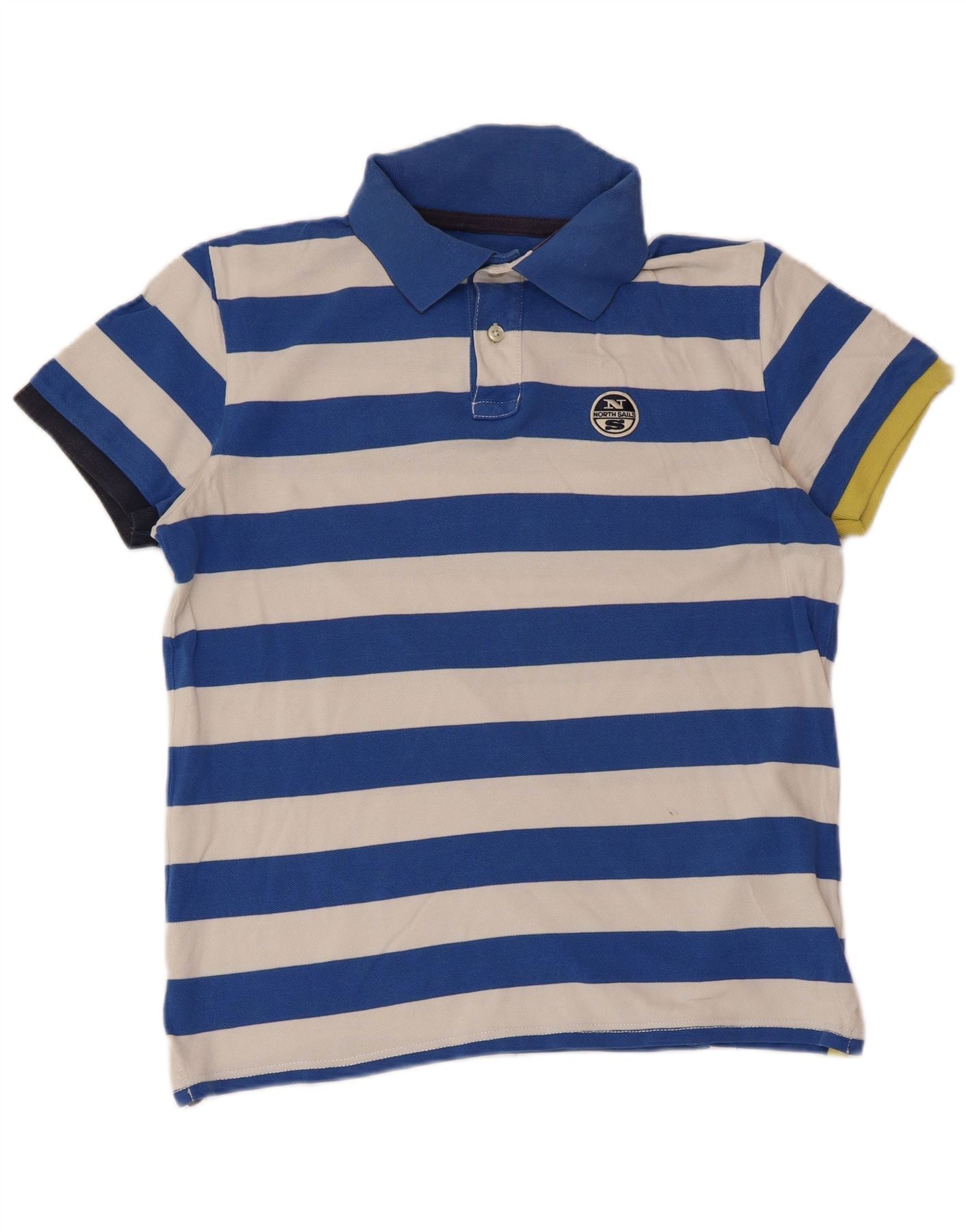 NORTH SAILS Mens Rugby Polo Shirt Large Blue Striped Cotton