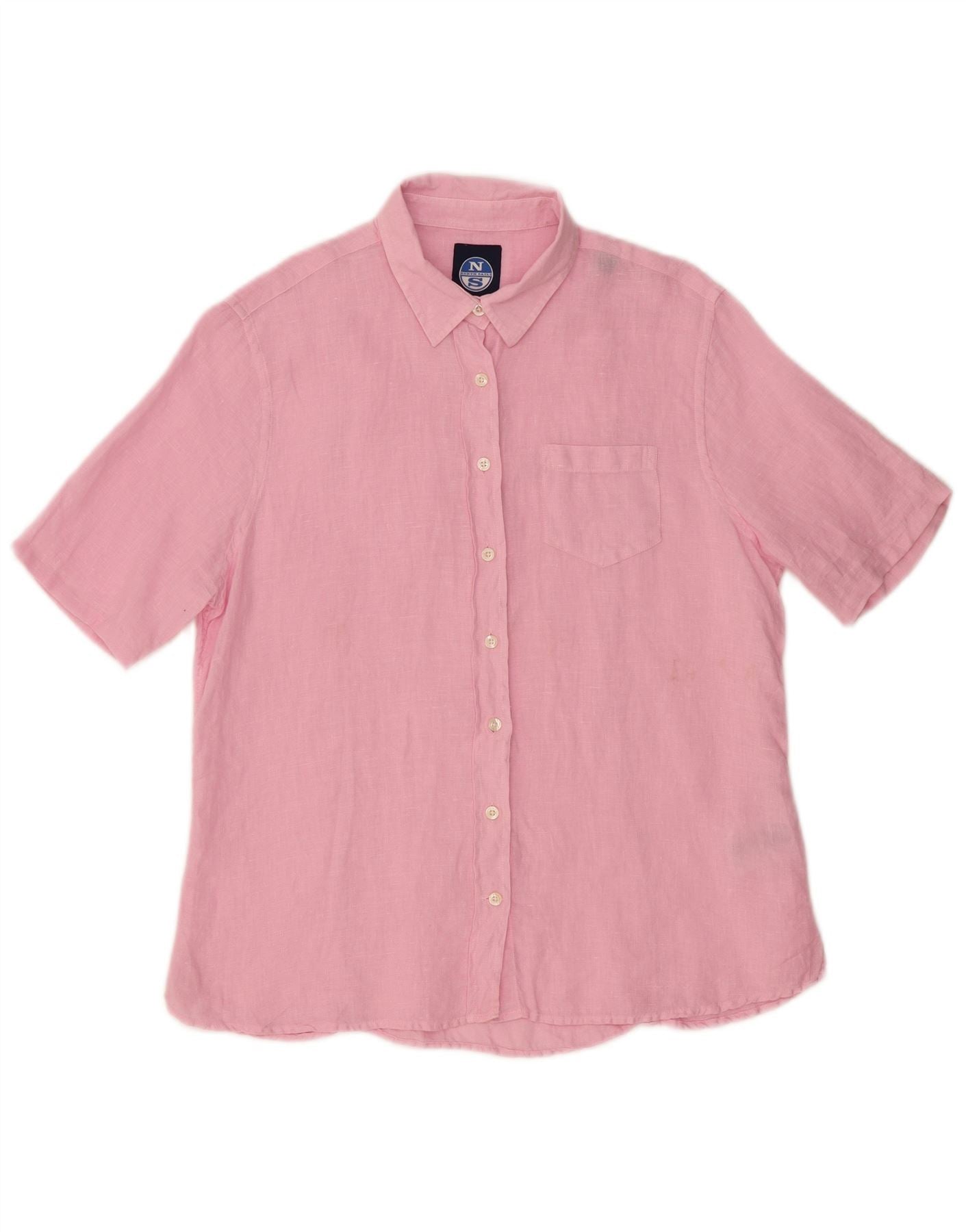 NORTH SAILS Womens Short Sleeve Shirt UK 14 Medium Pink Linen