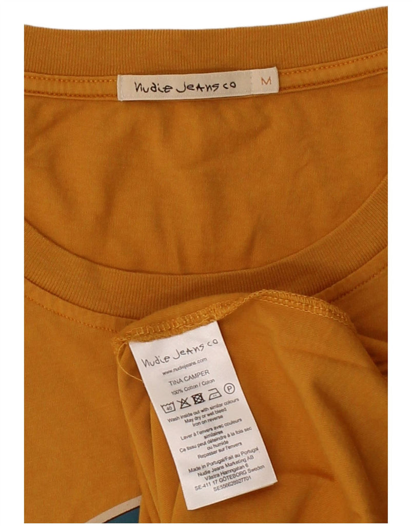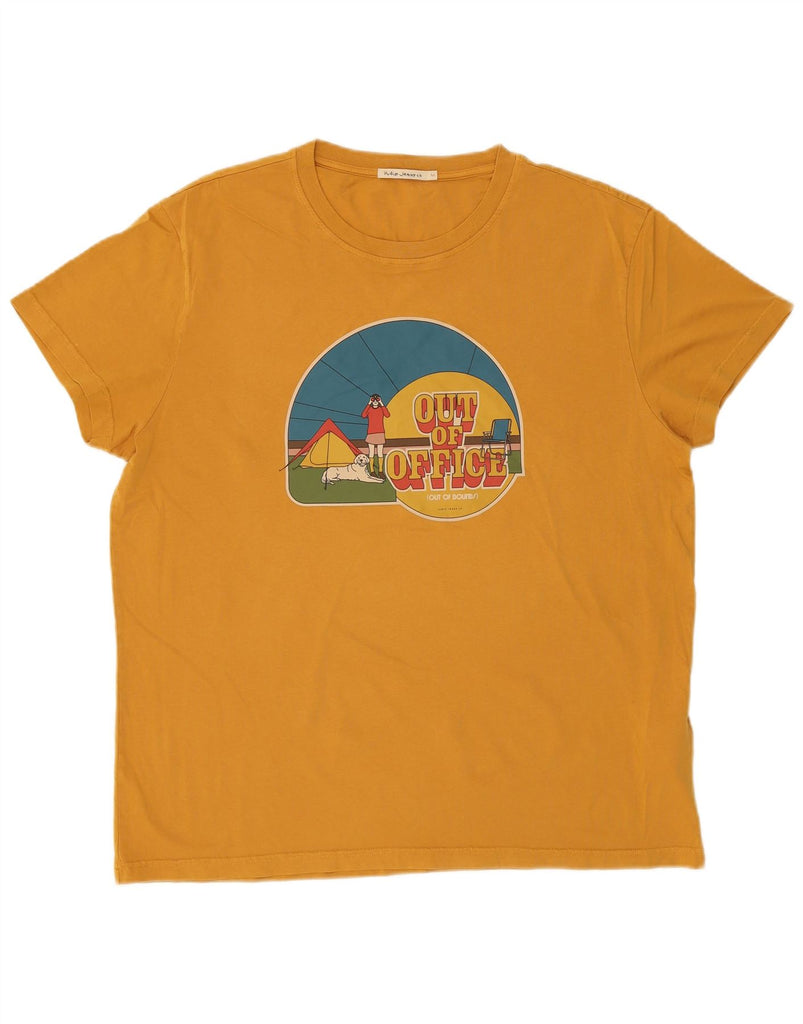 NUDIE JEANS Mens Graphic T-Shirt Top Medium Yellow Cotton