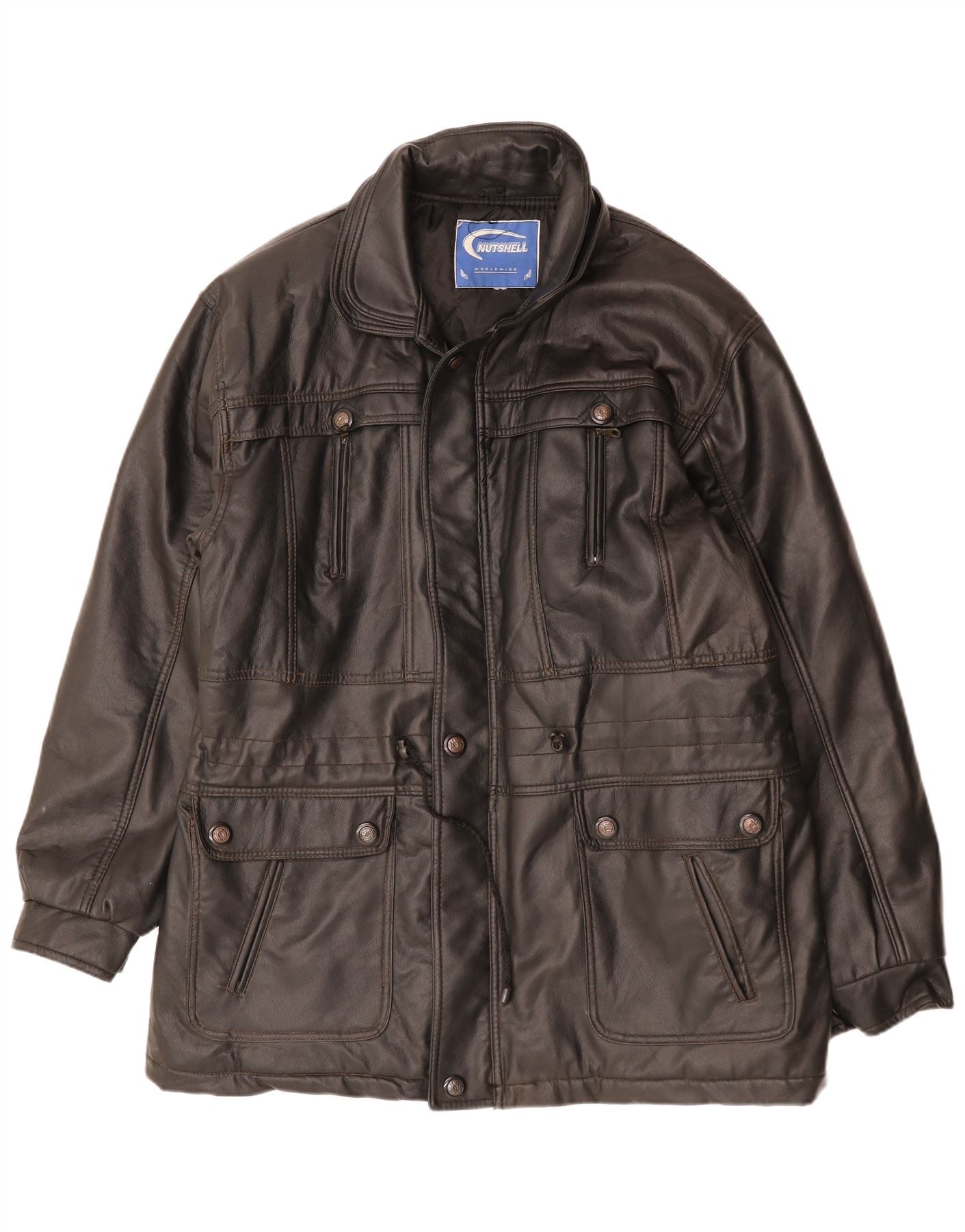 NUTSHELL Mens Leather Coat UK 40 Large Black