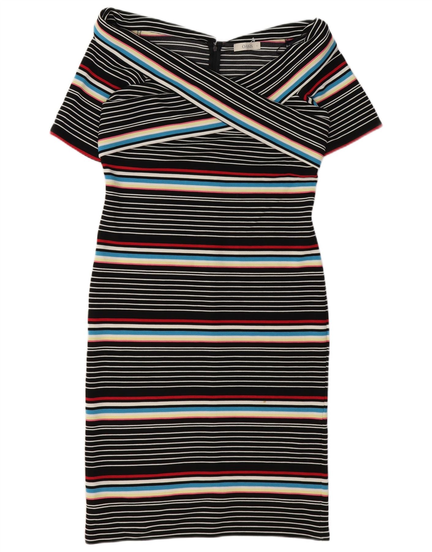 OASIS Womens Off Shoulder Dress UK 14 Large Multicoloured Striped