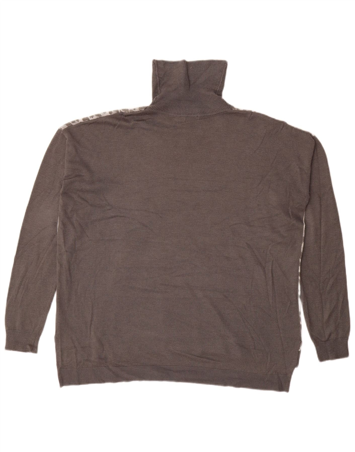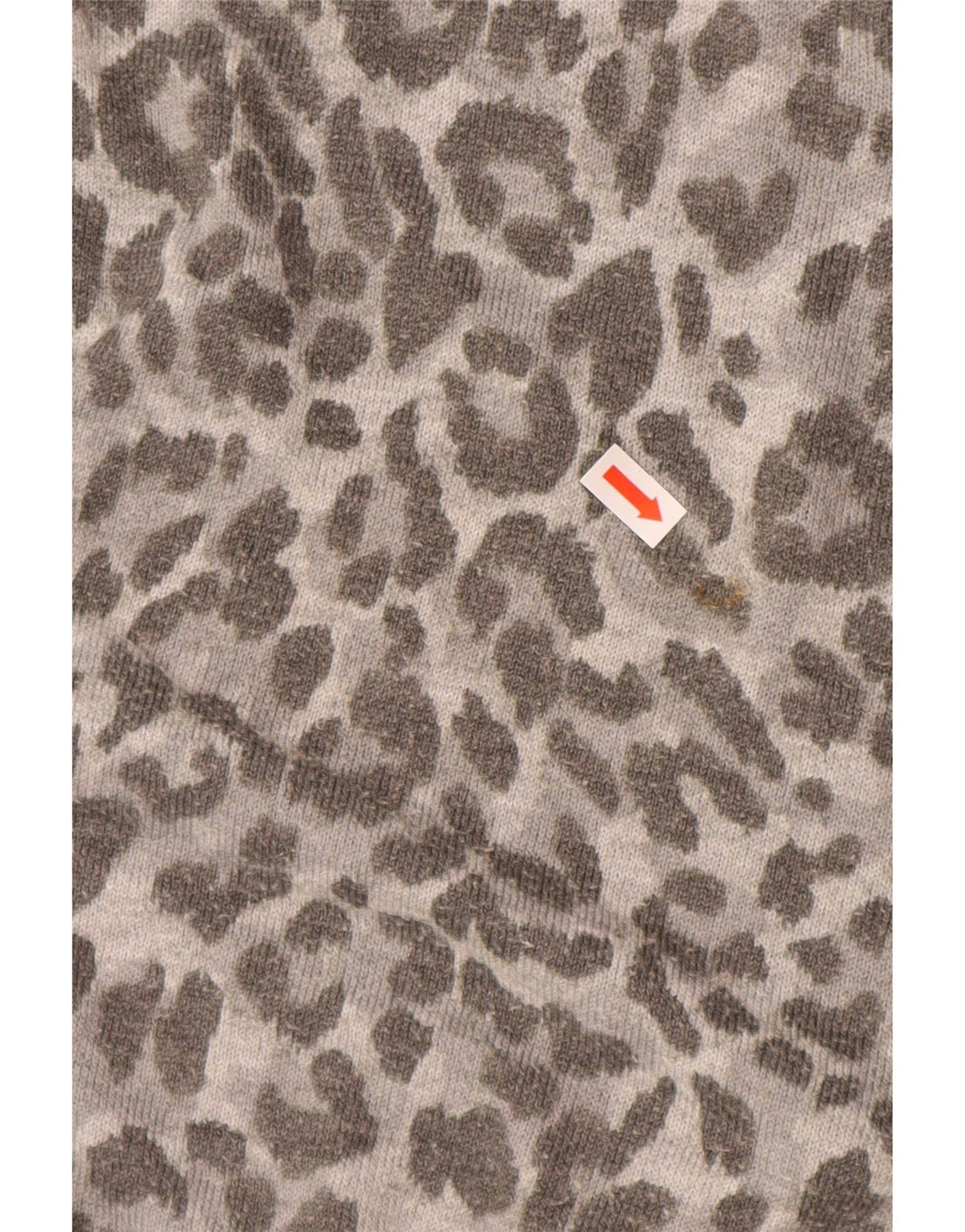 OASIS Womens Roll Neck Jumper Sweater UK 14 Medium Grey Animal Print