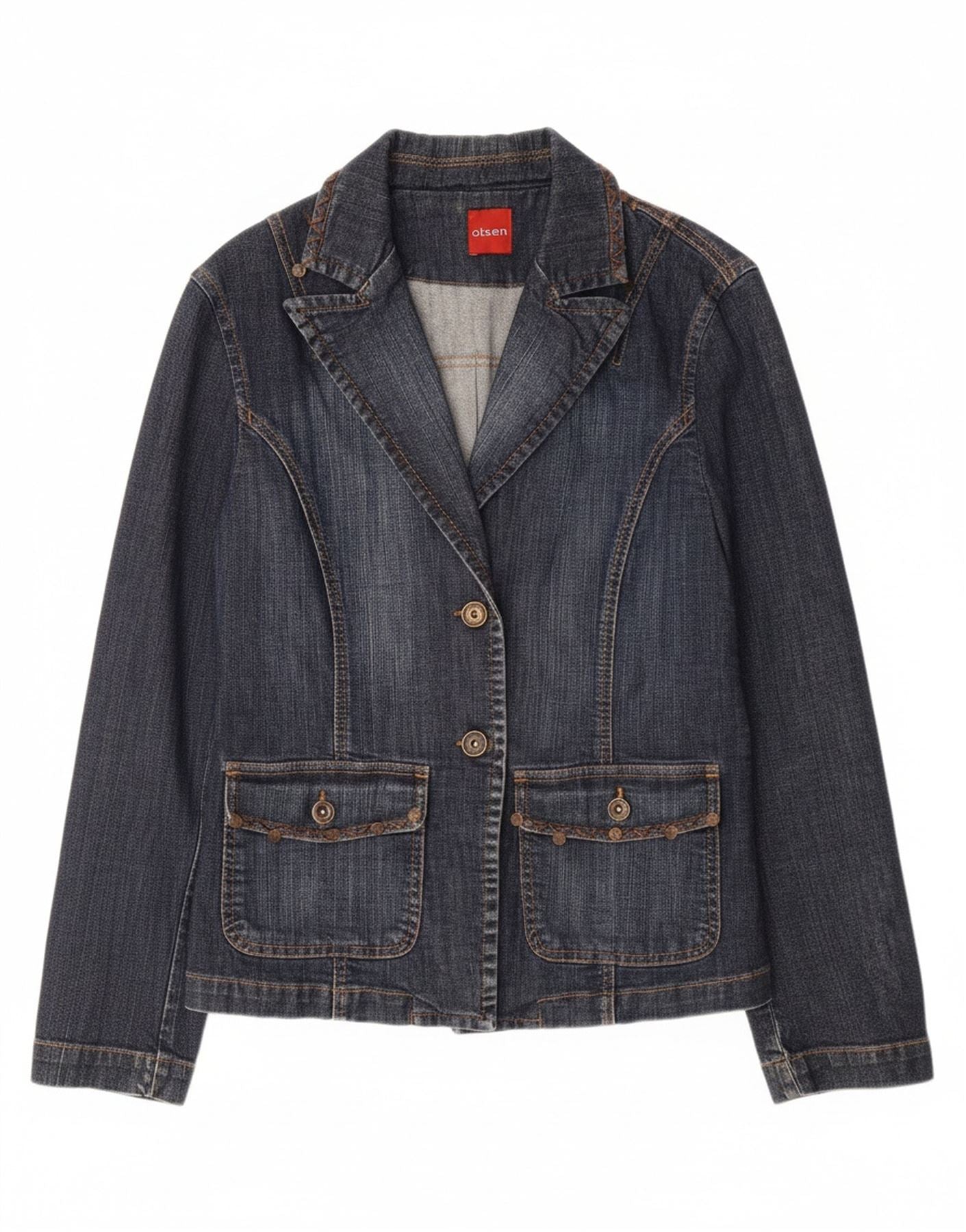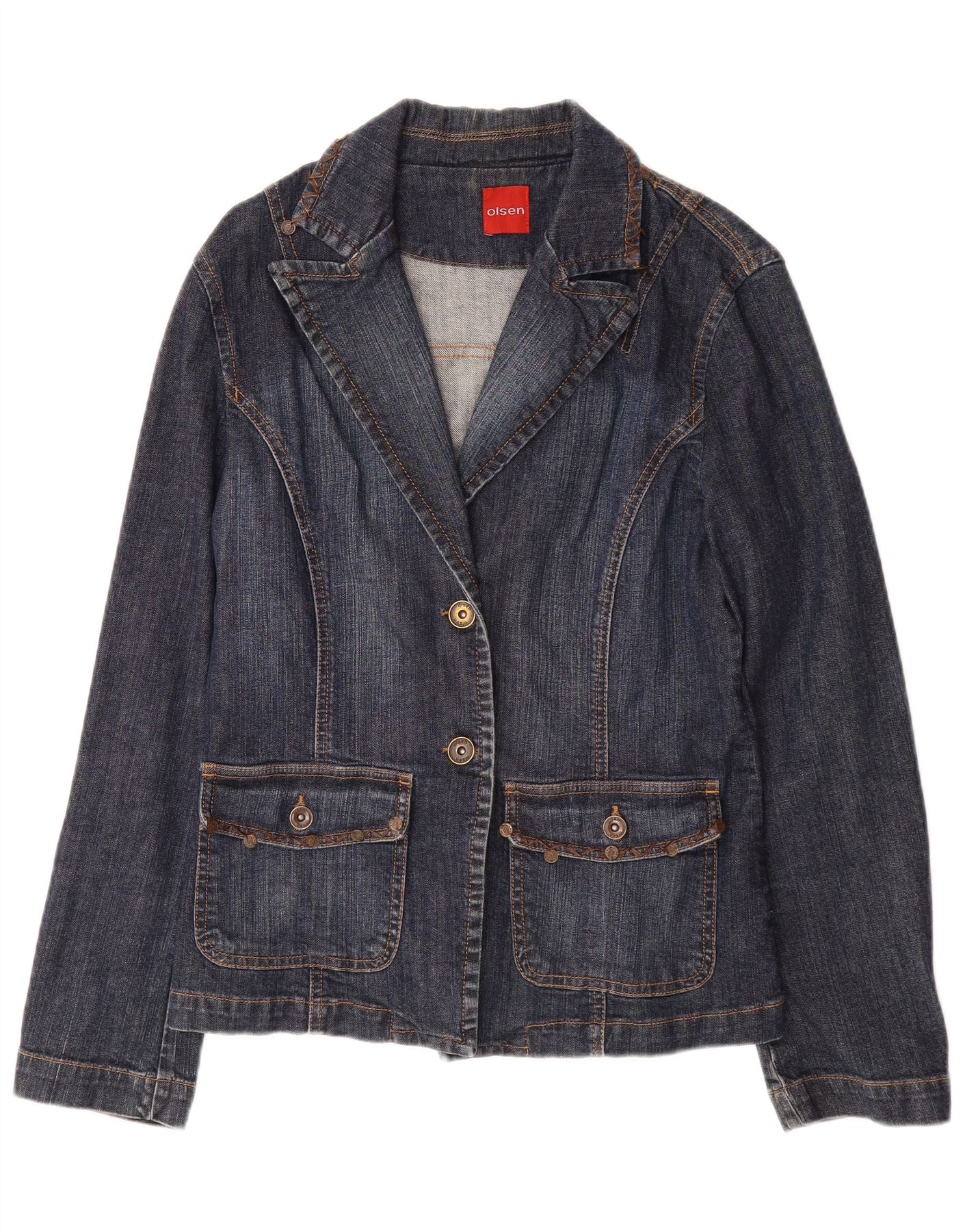 OLSEN Womens 2 Button Denim Blazer Jacket UK 14 Medium Blue Cotton