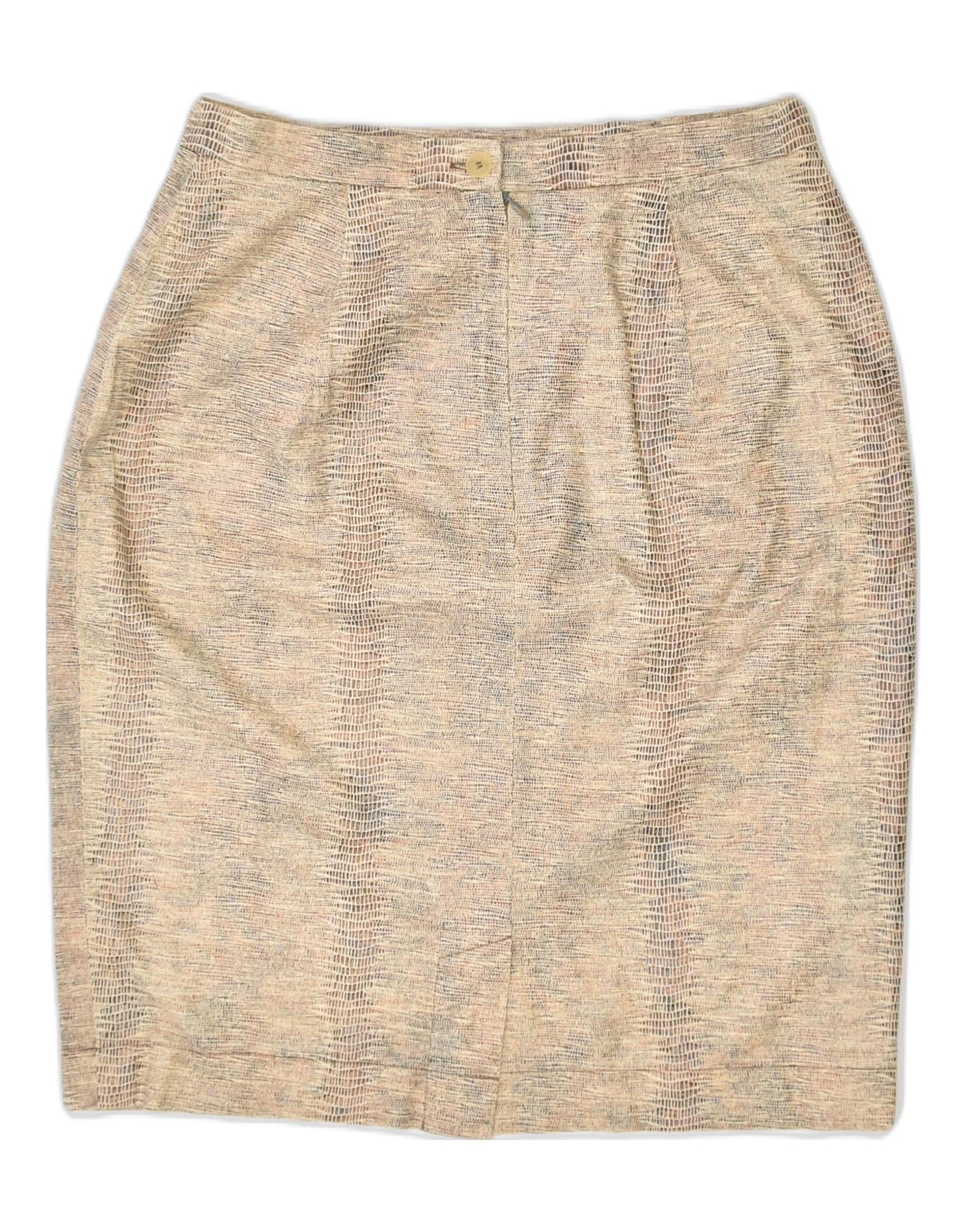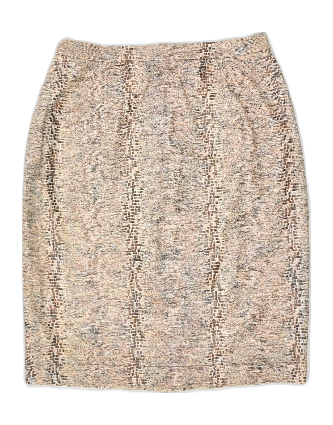 OLSEN Womens Straight Skirt UK 10 Small W26 Beige Animal Print Cotton
