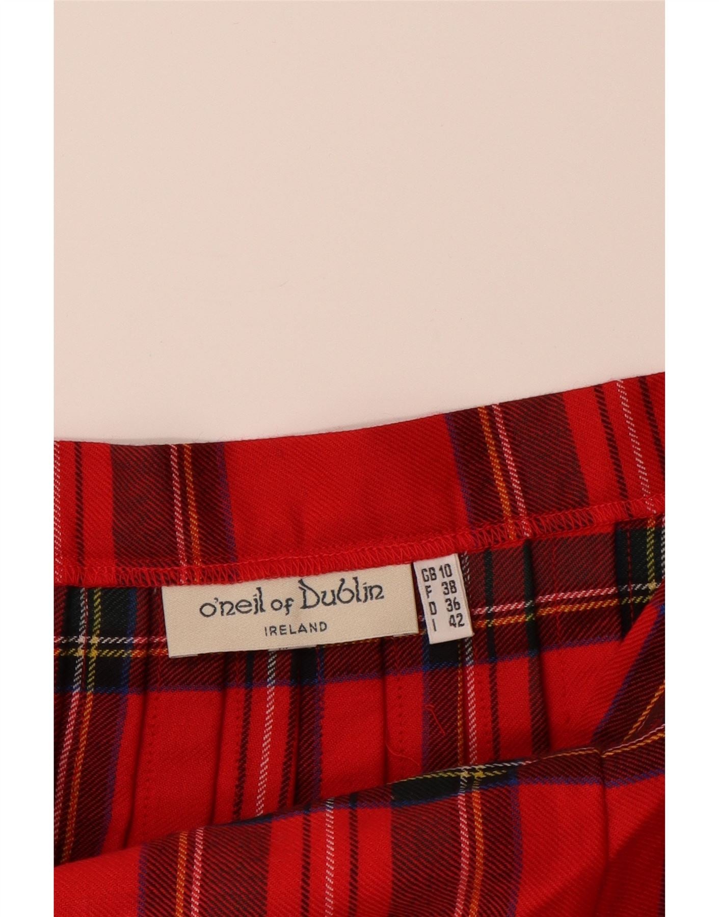- AI Description: This ONeil of Dublin womens pleated skirt embodies classic style. Crafted from woven fabric, it features a traditional red and green plaid pattern. The midi length offers an elegant silhouette, while the pleated structure creates graceful movement. A buckle closure provides authentic detailing, complemented by convenient pockets. This skirt delivers a refined, timeless aesthetic.