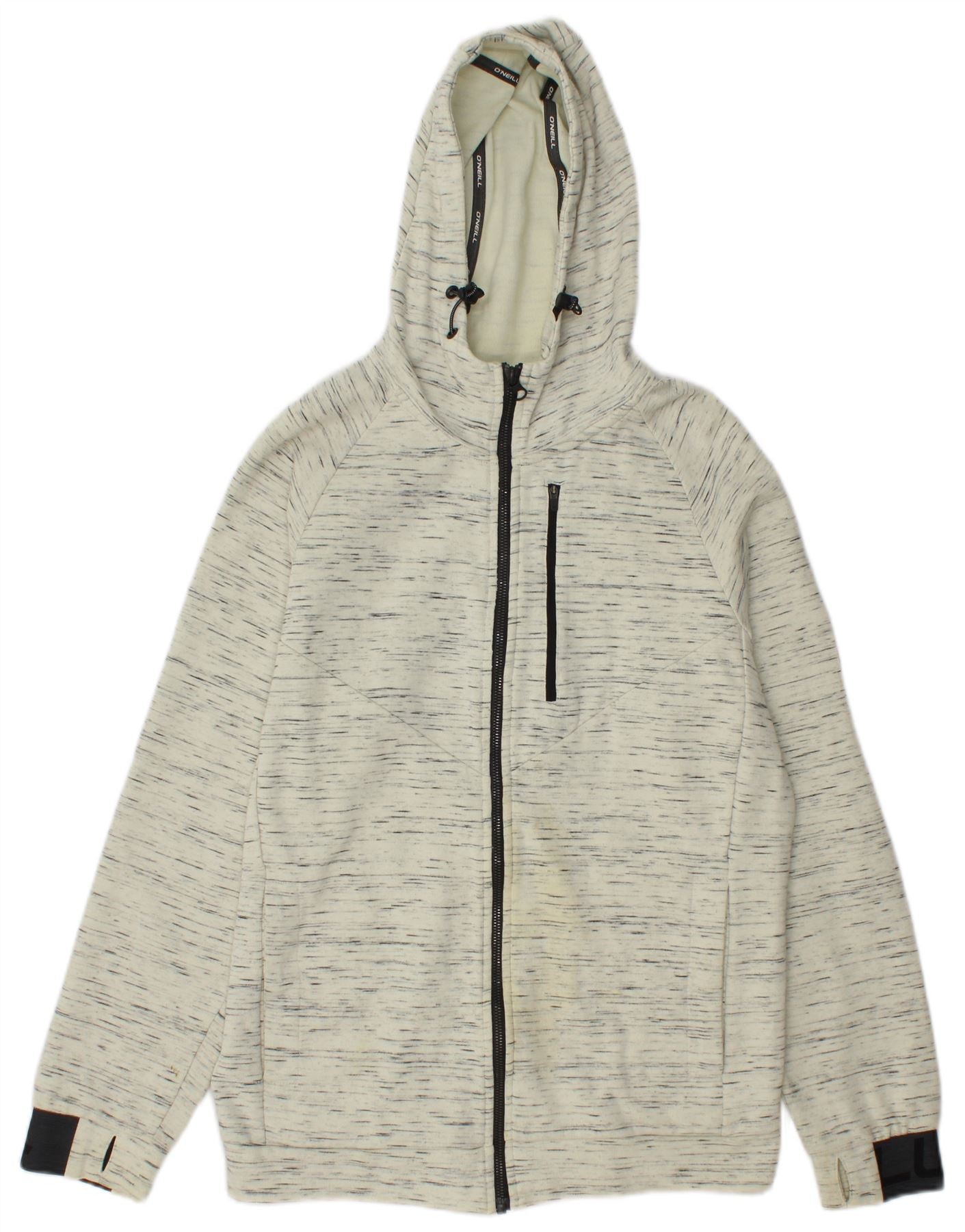 O'NEILL Mens Zip Hoodie Sweater Small Off White Flecked Cotton