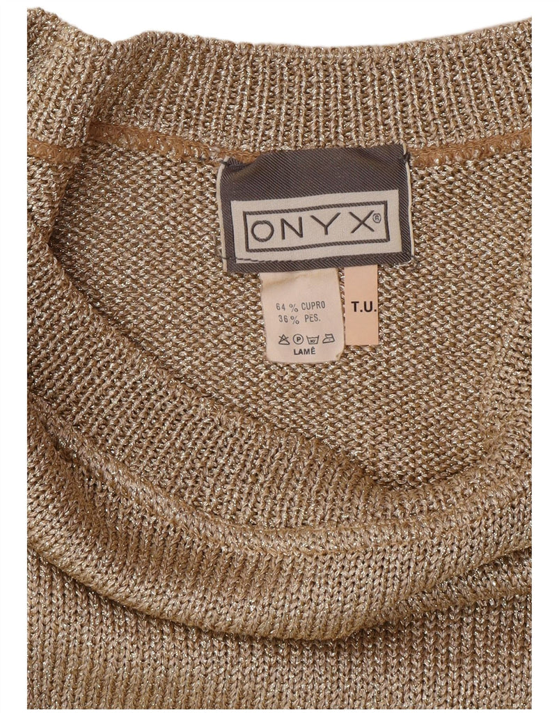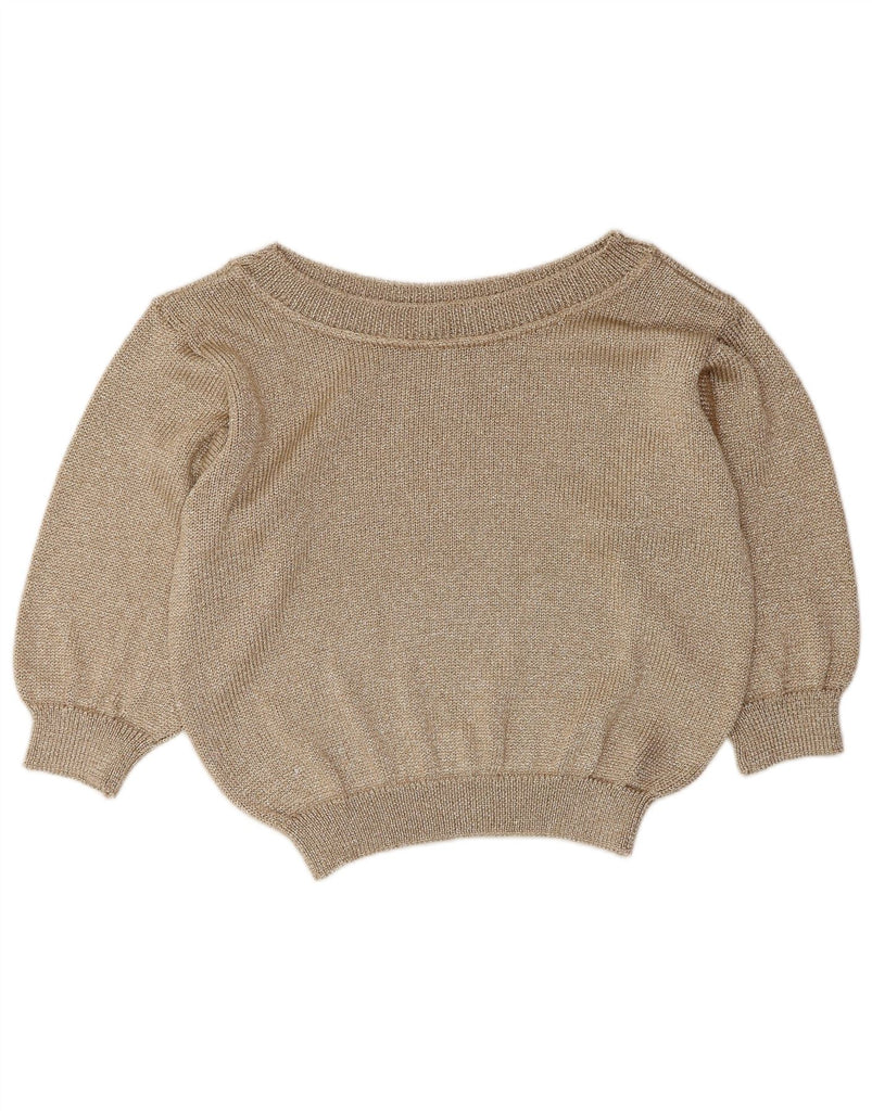 ONYX Womens Crop Boat Neck Jumper Sweater UK 14 Medium Gold Cupro
