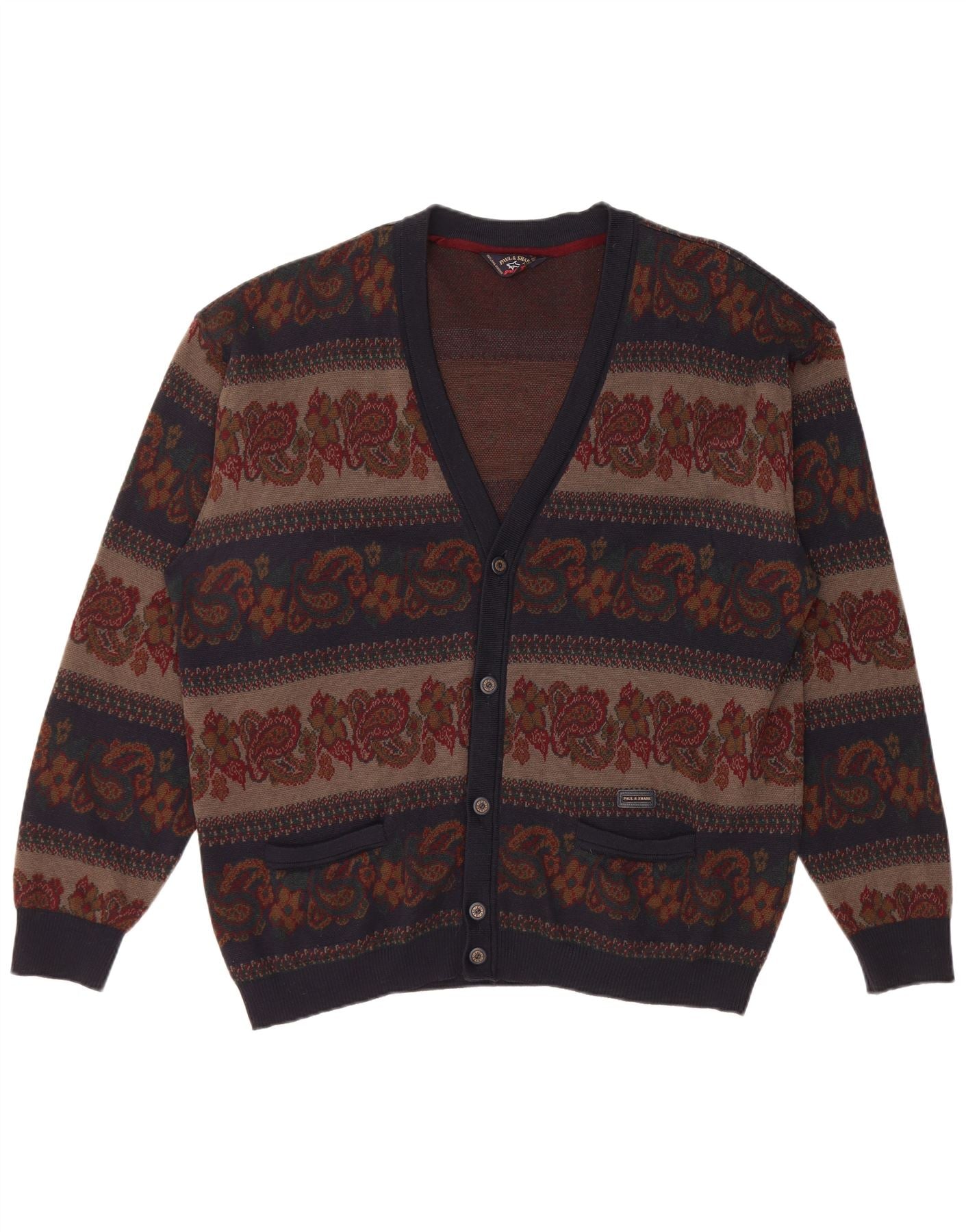 PAUL & SHARK Mens Cardigan Sweater 2XL Navy Blue Paisley New Wool