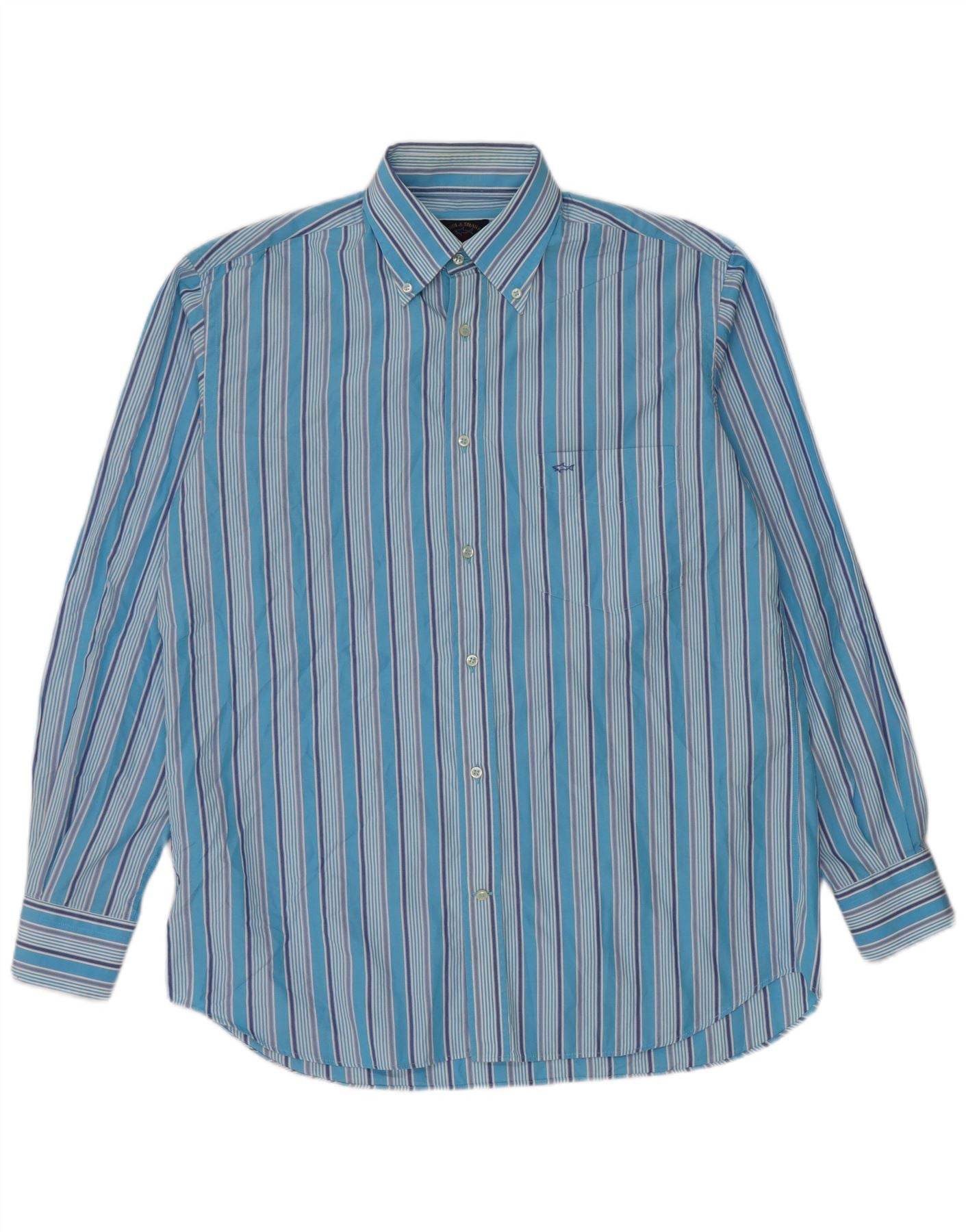 Paul & Shark Mens Shirt Size 40 Medium Blue Striped Cotton