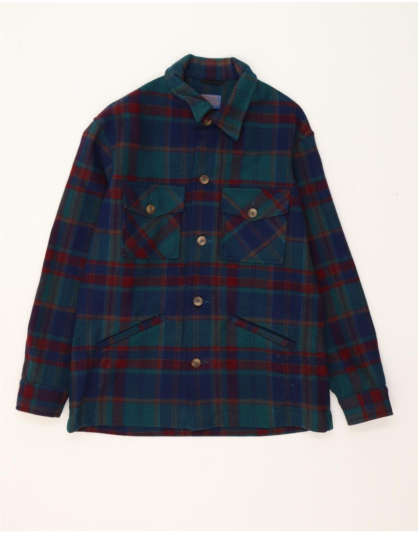 PENDLETON Mens Bomber Jacket UK 38 Medium Blue Check Virgin Wool