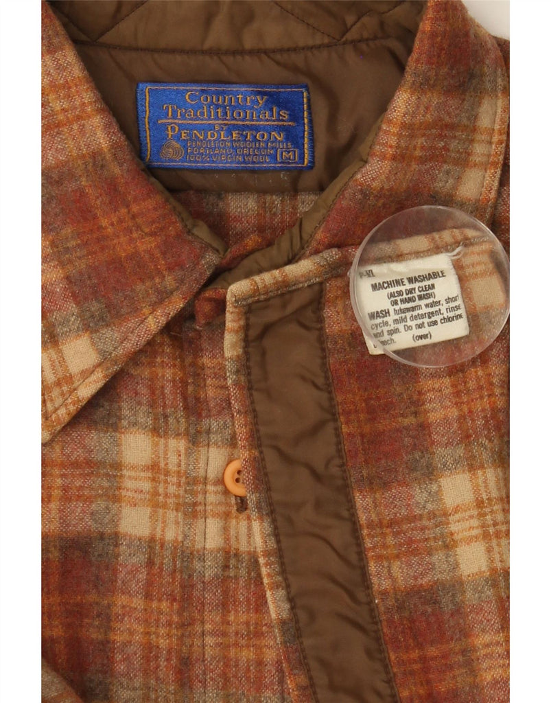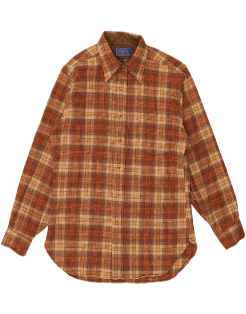 PENDLETON Mens Overshirt Flannel Shirt Medium Brown Check Wool