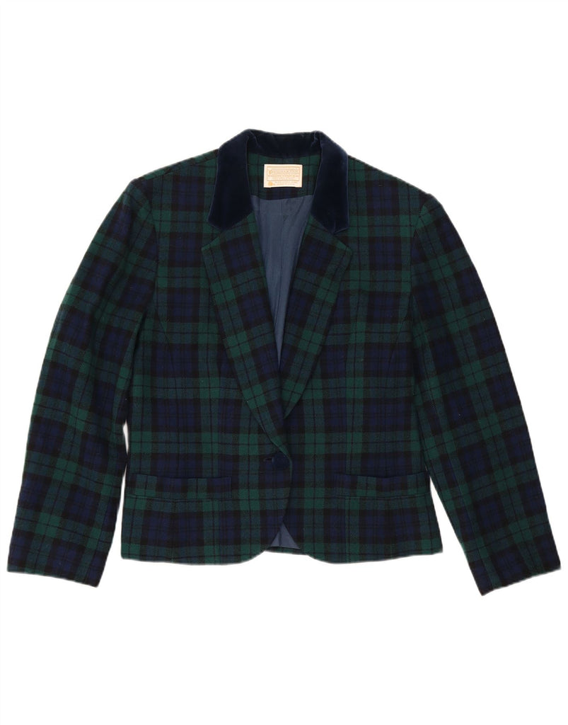 PENDLETON Womens 1 Button Blazer Jacket US 8 Medium Green Check New Wool