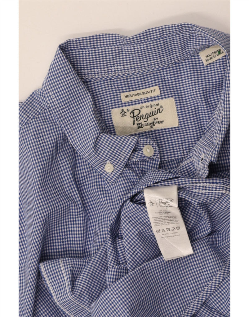 PENGUIN Mens Big & Tall Slim Fit Shirt XL Blue Gingham Cotton