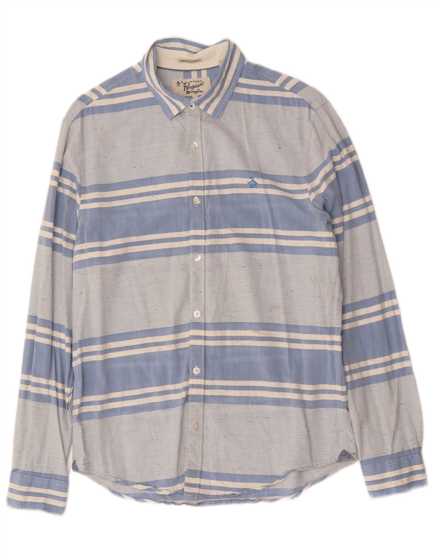 PENGUIN Mens Heritage Slim Fit Shirt Medium Blue Striped Cotton