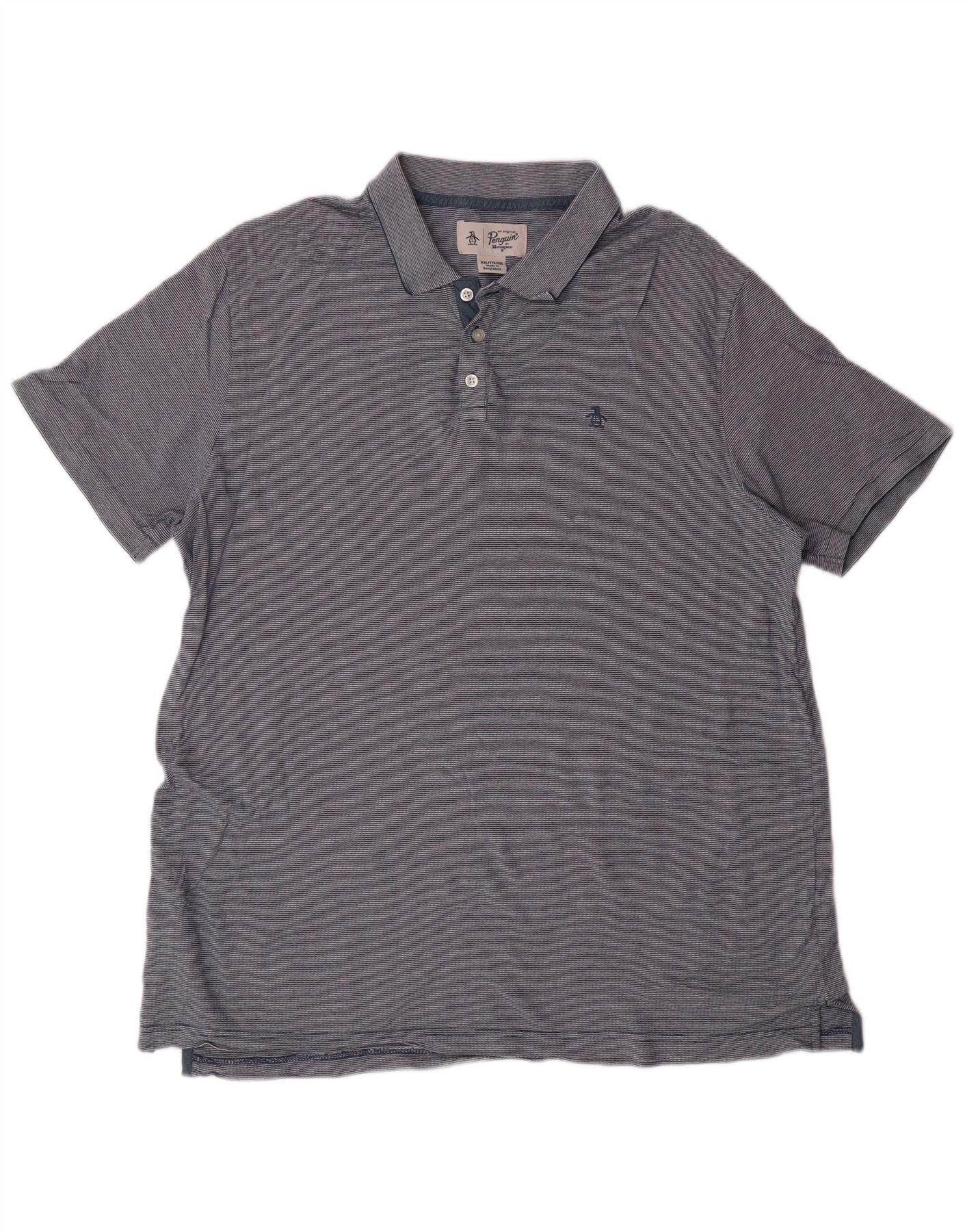 PENGUIN Mens Polo Shirt 2XL Blue Striped Cotton Classic