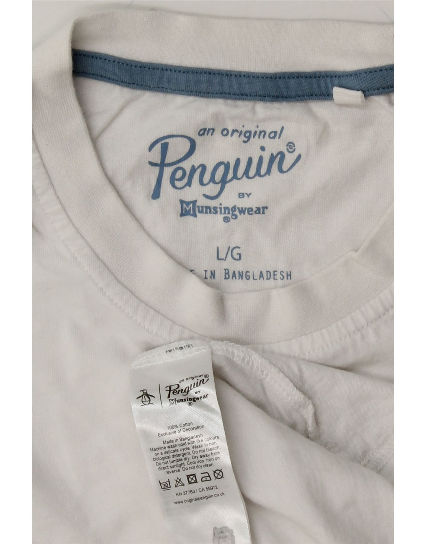 PENGUIN Mens T-Shirt Top Large White Spotted Cotton