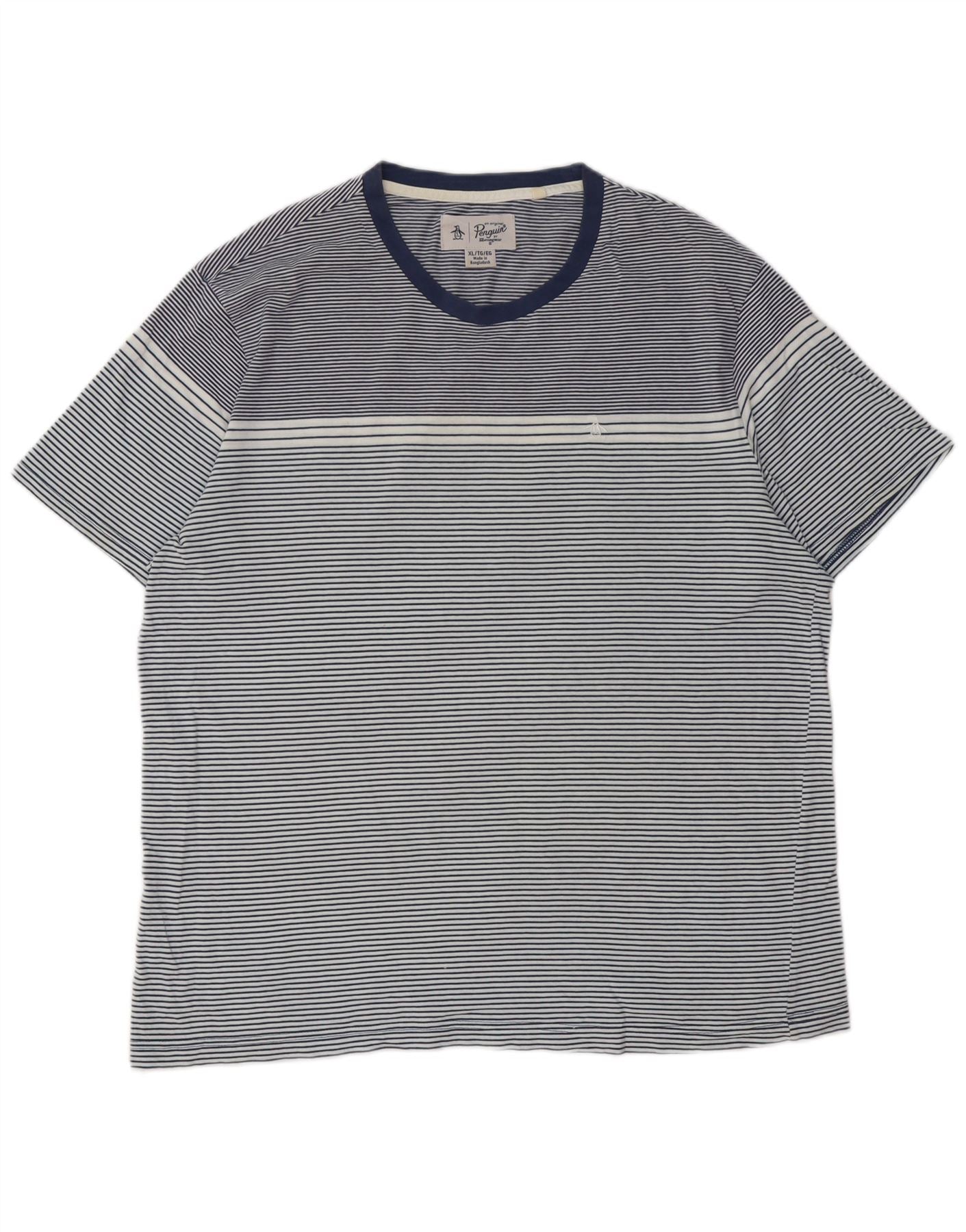 PENGUIN Mens Tall T-Shirt Top XL Navy Blue Striped Cotton