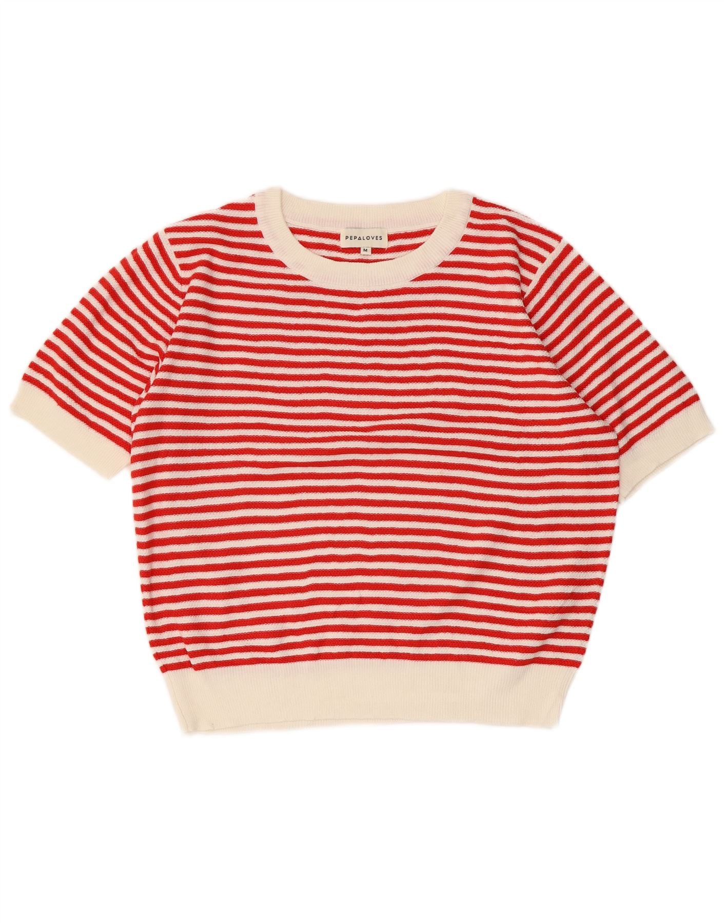 PEPALOVES Womens Crew Neck Jumper Sweater UK 14 Medium Red Striped